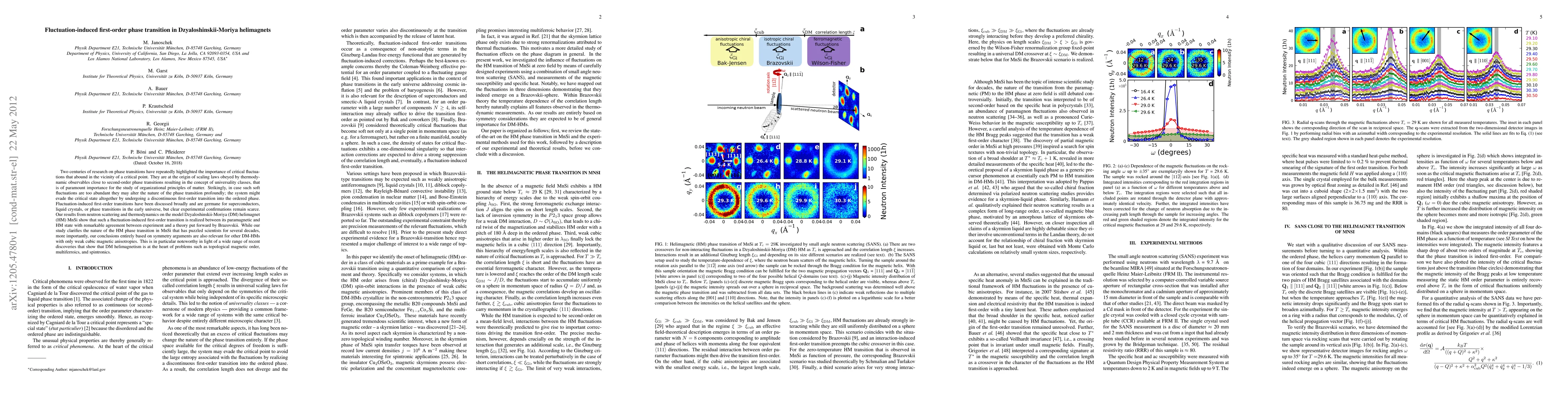 This paper demonstrates a fluctuation-induced first-order phase transition in the Dzyaloshinskii-Moriya helimagnet MnSi, using neutron scattering and thermodynamics. The findings confirm theoretical predictions and provide insights into the nature of phase transitions in materials with weak cubic magnetic anisotropies, relevant for topological magnetic order, multiferroics, and spintronics.