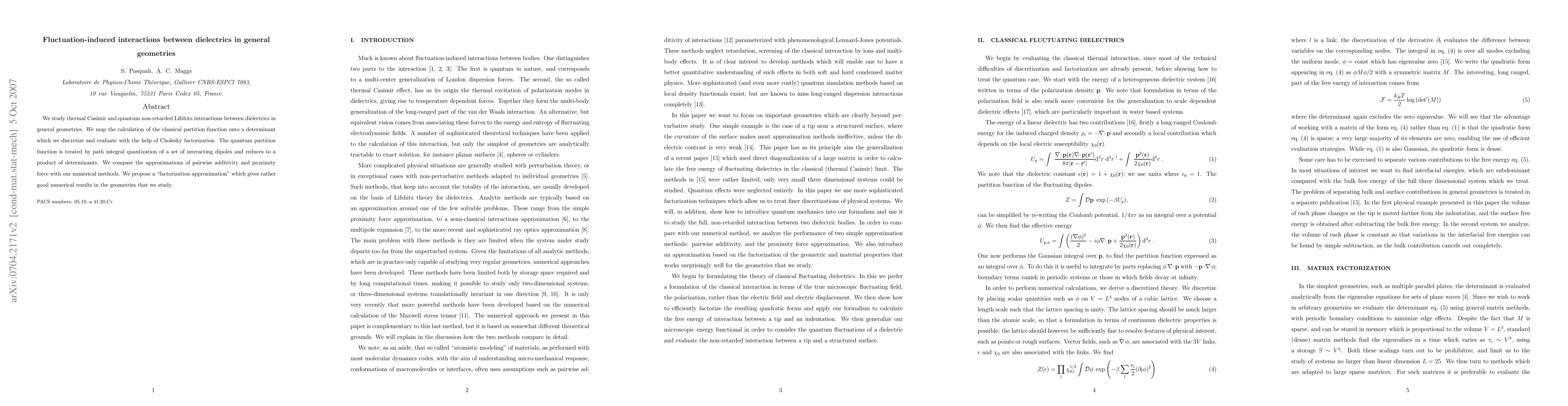 Researchers study interactions between dielectrics in various geometries using thermal Casimir and quantum non-retarded Lifshitz interactions. They propose a new approximation method, the factorization approximation, which yields good numerical results for certain geometries.