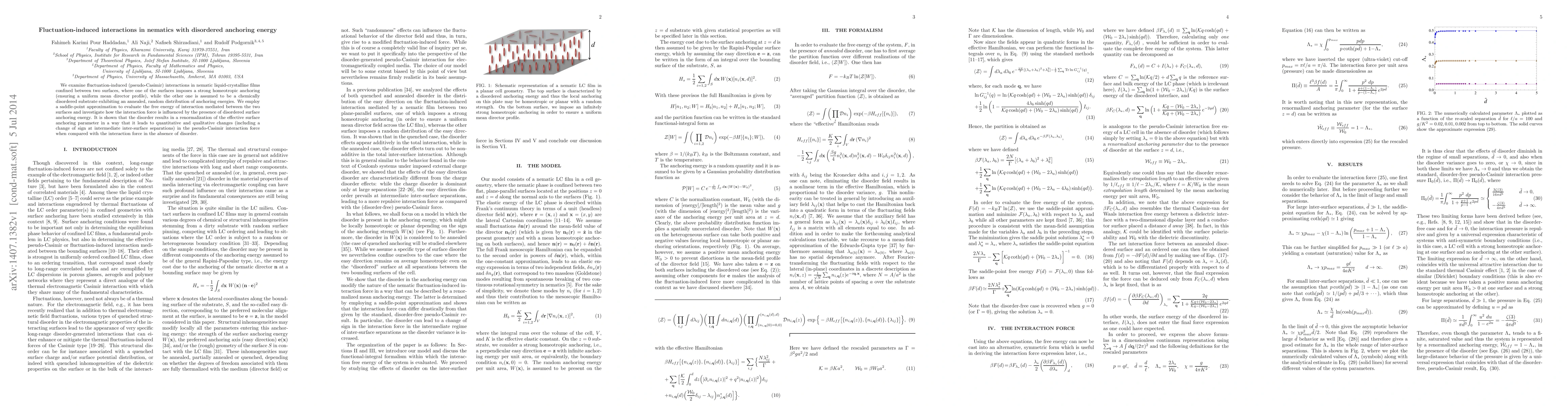 We examine fluctuation-induced (pseudo-Casimir) interactions in nematic liquid-crystalline films confined between two surfaces, where one of the surfaces imposes a strong homeotropic anchoring (ensuring a uniform mean director profile), while the other one is assumed to be a chemically disordered substrate exhibiting an annealed, random distribution of anchoring energies. We employ a saddle-point approximation to evaluate the free energy of interaction mediated between the two surfaces and investigate how the interaction force is influenced by the presence of disordered surface anchoring energy. It is shown that the disorder results in a renormalization of the effective surface anchoring parameter in a way that it leads to quantitative and qualitative changes (including a change of sign at intermediate inter-surface separations) in the pseudo-Casimir interaction force when compared with the interaction force in the absence of disorder.