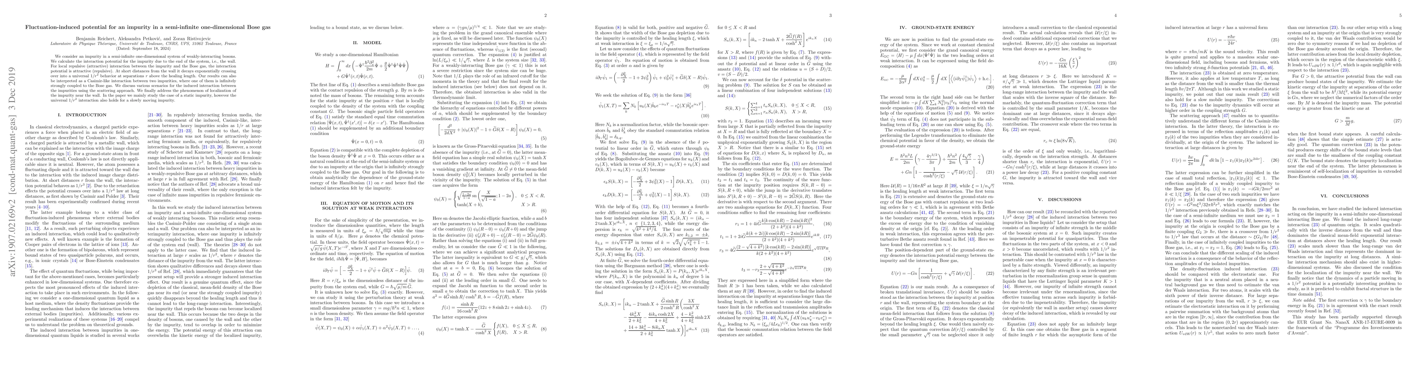 We consider an impurity in a semi-infinite one-dimensional system of weakly-interacting bosons. We calculate the interaction potential for the impurity due to the end of the system, i.e., the wall. For local repulsive (attractive) interaction between the impurity and the Bose gas, the interaction potential is attractive (repulsive). At short distances from the wall it decays exponentially crossing over into a universal $1/r^2$ behavior at separations $r$ above the healing length. Our results can also be interpreted as a Casimir-like interaction between two impurities, where one of them is infinitely strongly coupled to the Bose gas. We discuss various scenarios for the induced interaction between the impurities using the scattering approach. We finally address the phenomenon of localization of the impurity near the wall. In the paper we mainly study the case of a static impurity, however the universal $1/r^2$ interaction also holds for a slowly moving impurity.
