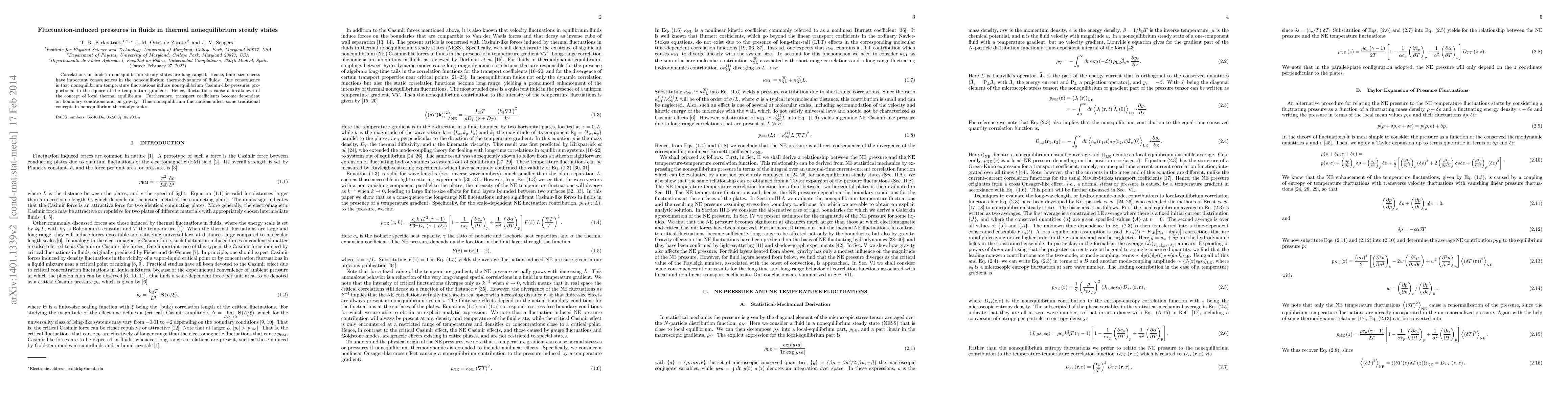 Correlations in fluids in nonequilibrium steady states are long ranged. Hence, finite-size effects have important consequences in the nonequilibrium thermodynamics of fluids. One consequence is that nonequilibrium temperature fluctuations induce nonequilibrium Casimir-like pressures proportional to the square of the temperature gradient. Hence, fluctuations cause a breakdown of the concept of local thermal equilibrium. Furthermore, transport coefficients become dependent on boundary conditions and on gravity. Thus nonequilibrium fluctuations affect some traditional concepts in nonequilibrium thermodynamics.