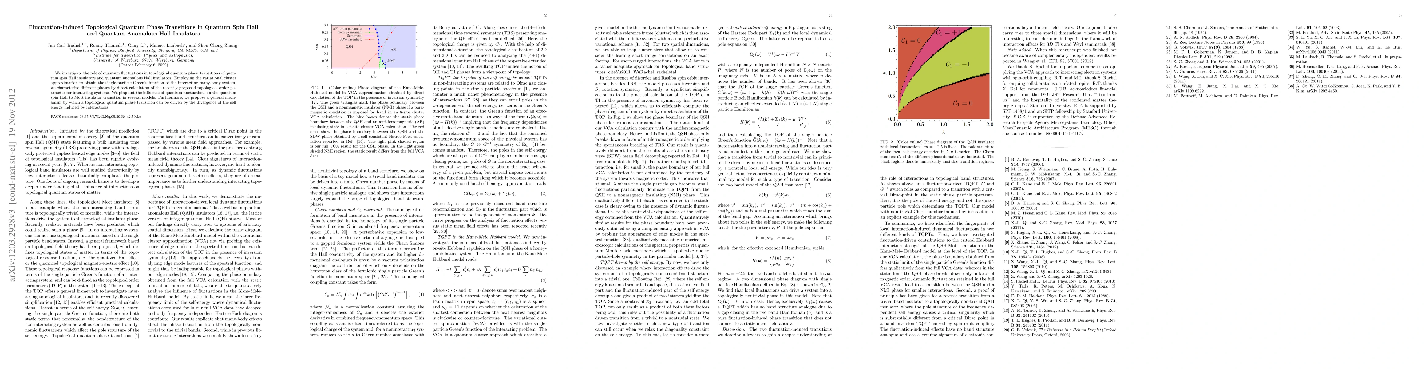 This paper explores how quantum fluctuations impact topological phase transitions in quantum spin Hall and quantum anomalous Hall insulators. Using the variational cluster approximation, the authors determine different phases through a topological order parameter, revealing the influence of quantum effects on transitions and proposing a mechanism where interactions drive such transitions.