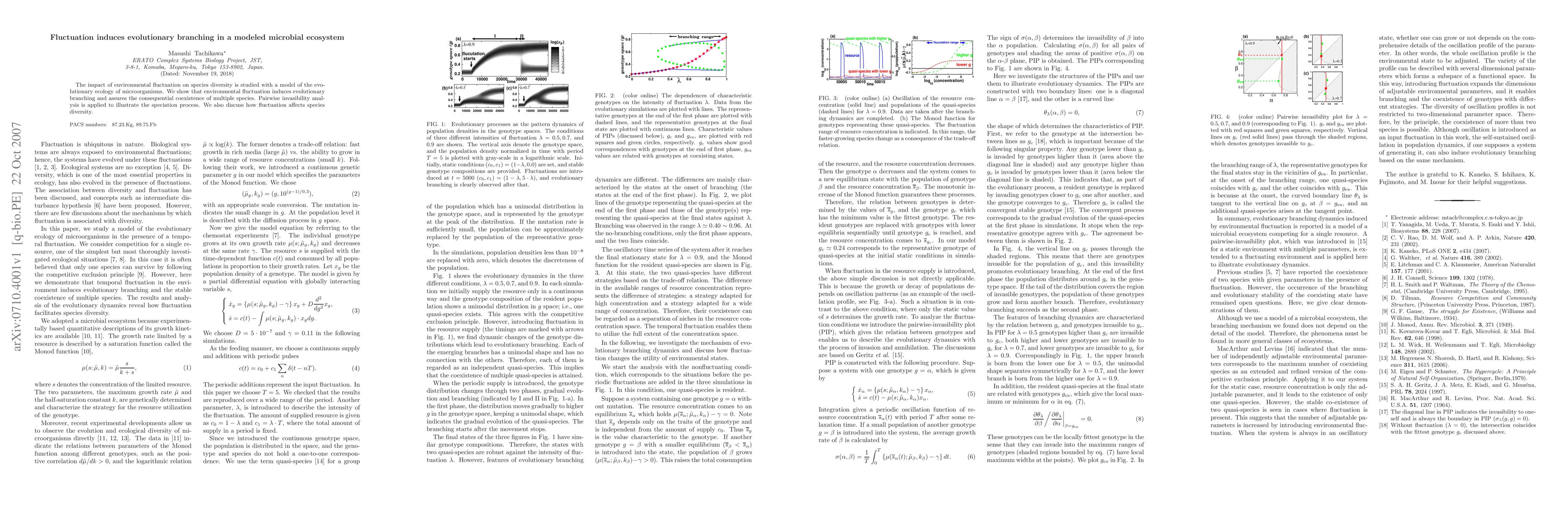 This research uses a model to demonstrate that environmental changes or fluctuations can lead to the evolution of multiple microbial species, ensuring their coexistence. The study employs pairwise invasibility analysis to explain this speciation process, highlighting the role of fluctuation in promoting species diversity.