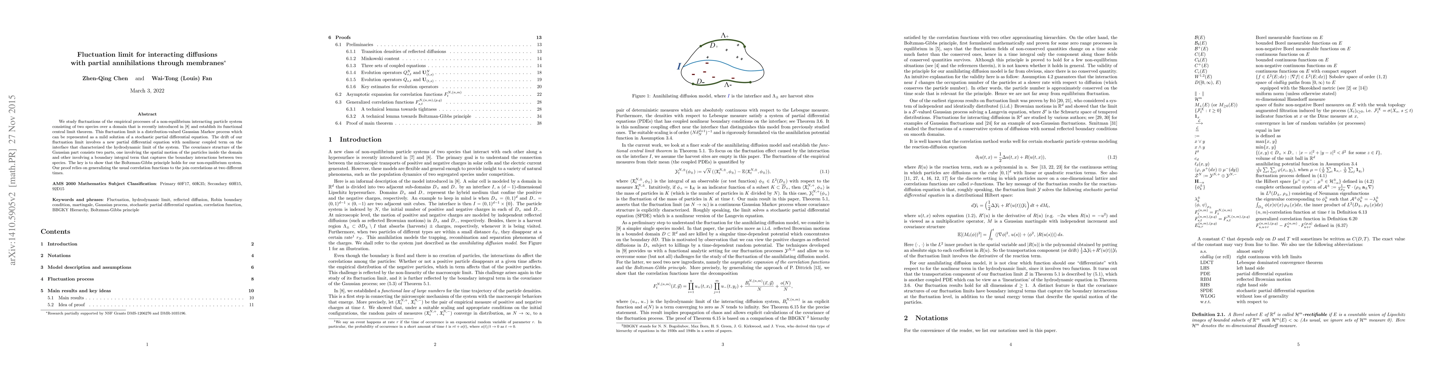 This research establishes a functional central limit theorem for a non-equilibrium interacting particle system with two species, introducing a distribution-valued Gaussian Markov process as its fluctuation limit. The limit's drift is characterized by a unique PDE with coupled terms on the interface, while its covariance involves both internal particle motion and boundary interaction terms. The key is proving the Boltzmann-Gibbs principle, achieved by generalizing correlation functions to join correlations at different times.