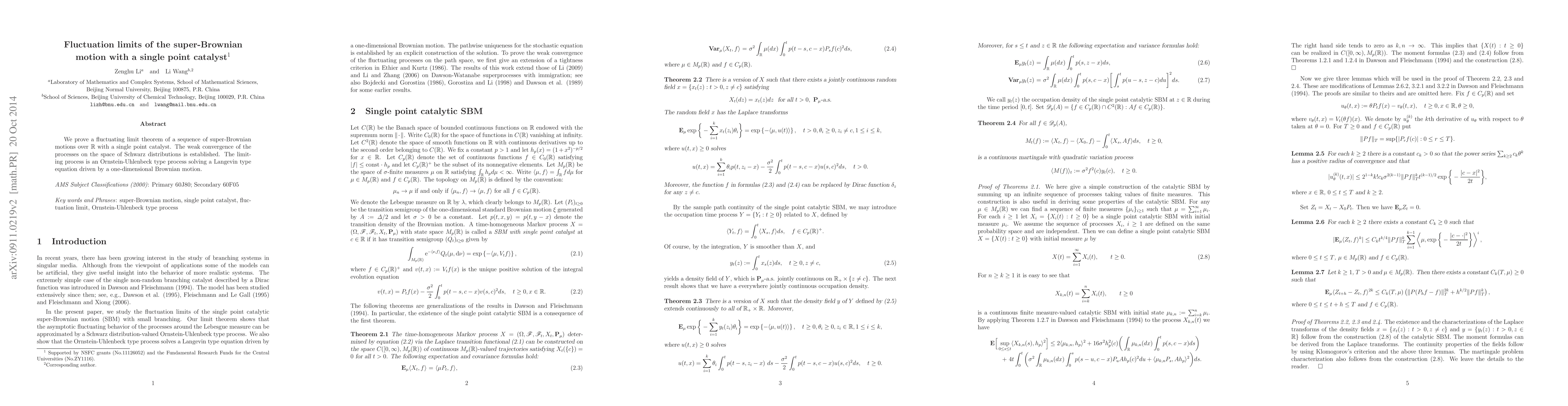 We prove a fluctuating limit theorem of a sequence of super-Brownian motions over $\mbb{R}$ with a single point catalyst. The weak convergence of the processes on the space of Schwarz distributions is established. The limiting process is an Ornstein-Uhlenbeck type process solving a Langevin type equation driven by a one-dimensional Brownian motion.