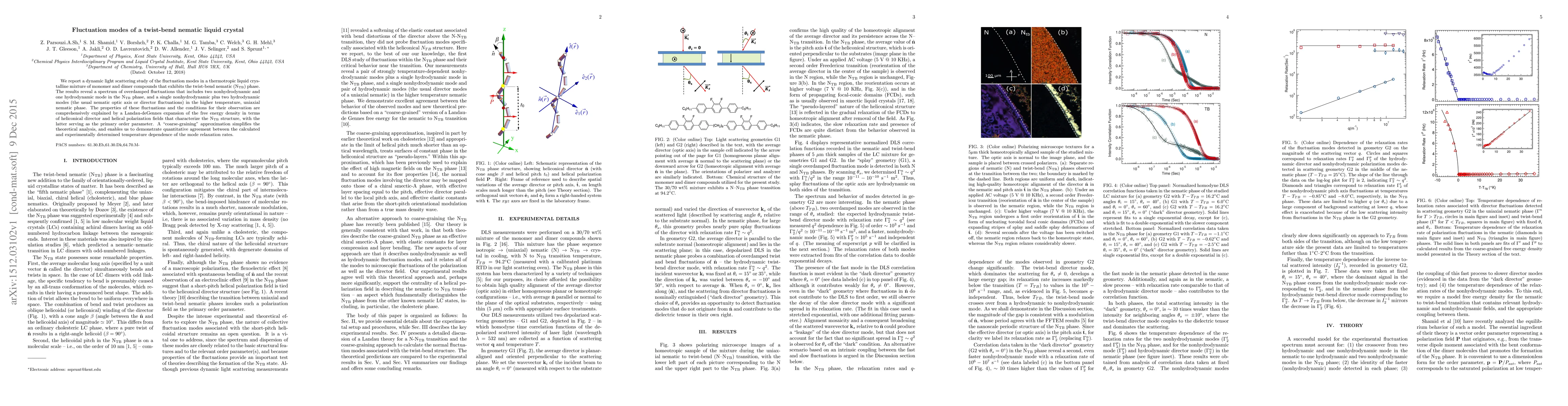This study investigates fluctuation modes in a twist-bend nematic liquid crystal using dynamic light scattering, revealing distinct fluctuation spectra in the $\mathrm{N_{TB}}$ phase and the uniaxial nematic phase. Theoretical analysis using a Landau-deGennes expansion and a "coarse-graining" approximation confirms quantitative agreement with experimental observations.