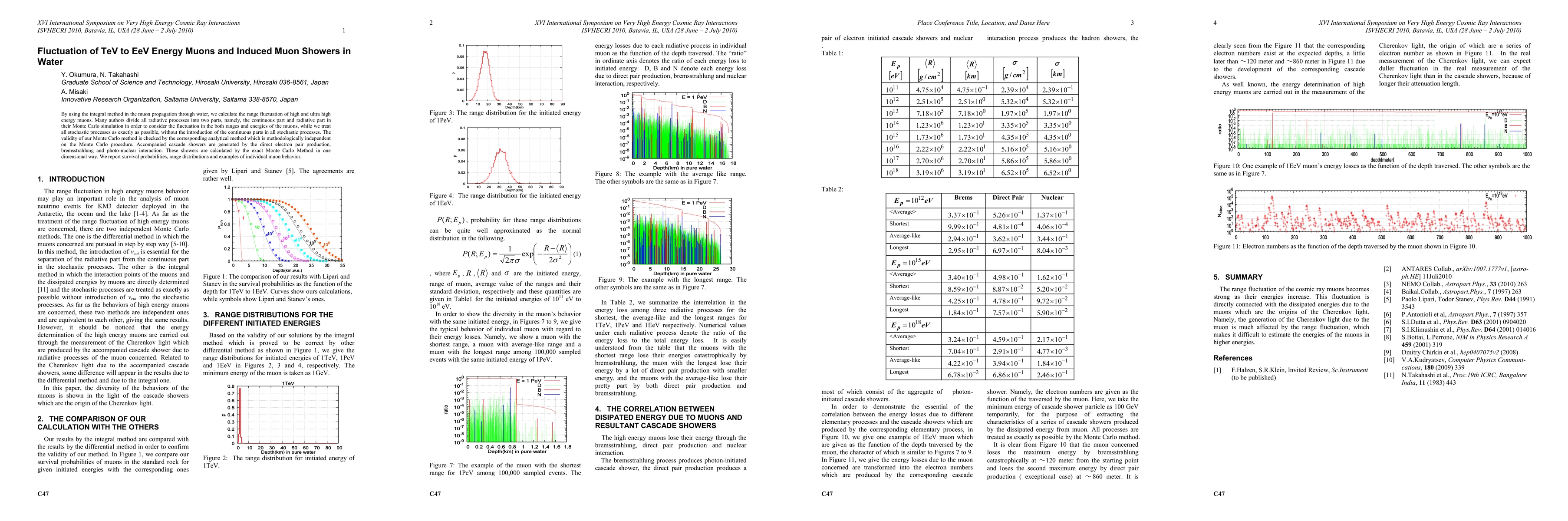 By using the integral method in the muon propagation through water, we calculate the range fluctuation of high and ultra high energy muons. Many authors divide all radiative processes into two parts, namely, the continuous part and radiative part in their Monte Carlo simulation in order to consider the fluctuation in the both ranges and energies of the muons, while we treat all stochastic processes as exactly as possible, without the introduction of the continuous parts in all stochastic processes. The validity of our Monte Carlo method is checked by the corresponding analytical method which is methodologically independent on the Monte Carlo procedure. Accompanied cascade showers are generated by the direct electron pair production, bremsstrahlung and photo-nuclear interaction. These showers are calculated by the exact Monte Carlo Method in one dimensional way. We report survival probabilities, range distributions and examples of individual muon behavior.