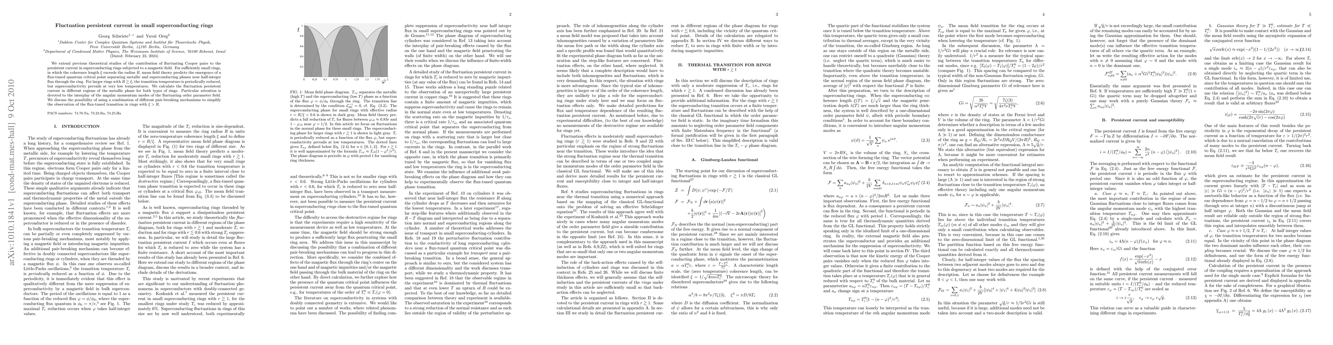 This paper investigates the fluctuation-induced persistent current in superconducting rings under magnetic fields, focusing on the quantum critical behavior in small rings where the coherence length exceeds the radius. It explores the interplay between angular momentum modes and the potential for observing flux-tuned transitions using pair-breaking mechanisms.