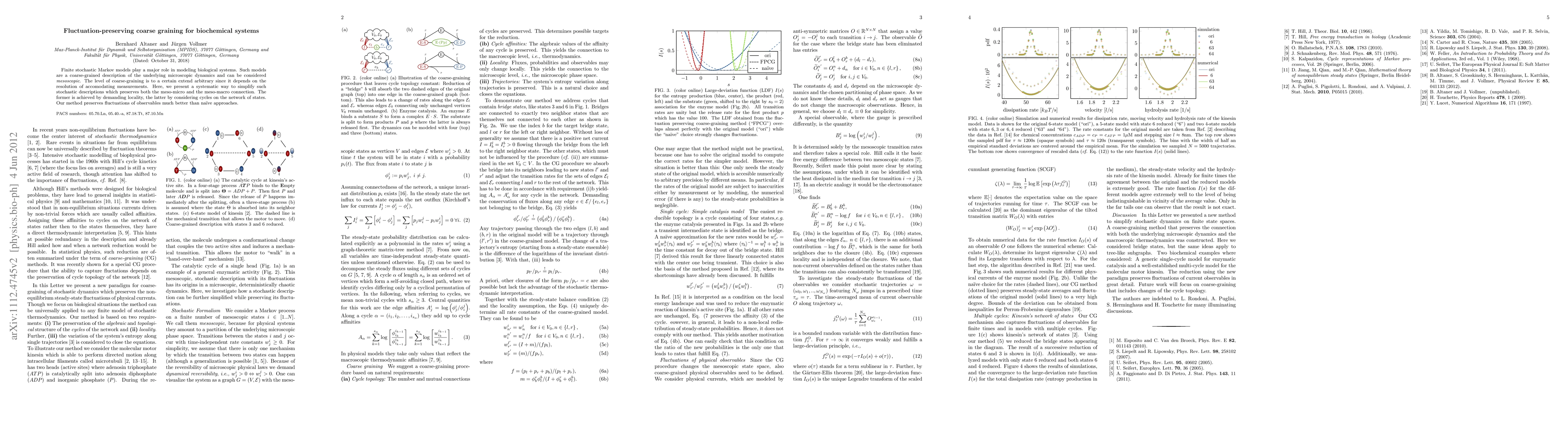 Finite stochastic Markov models play a major role for modelling biochemical pathways. Such models are a coarse-grained description of the underlying microscopic dynamics and can be considered mesoscopic. The level of coarse-graining is to a certain extend arbitrary since it depends on the resolution of accomodating measurements. Here, we present a way to simplify such stochastic descriptions, which preserves both the meso-micro and the meso-macro connection. The former is achieved by demanding locality, the latter by considering cycles on the network of states. Using single- and multicycle examples we demonstrate how our new method preserves fluctuations of observables much better than na\"ive approaches.