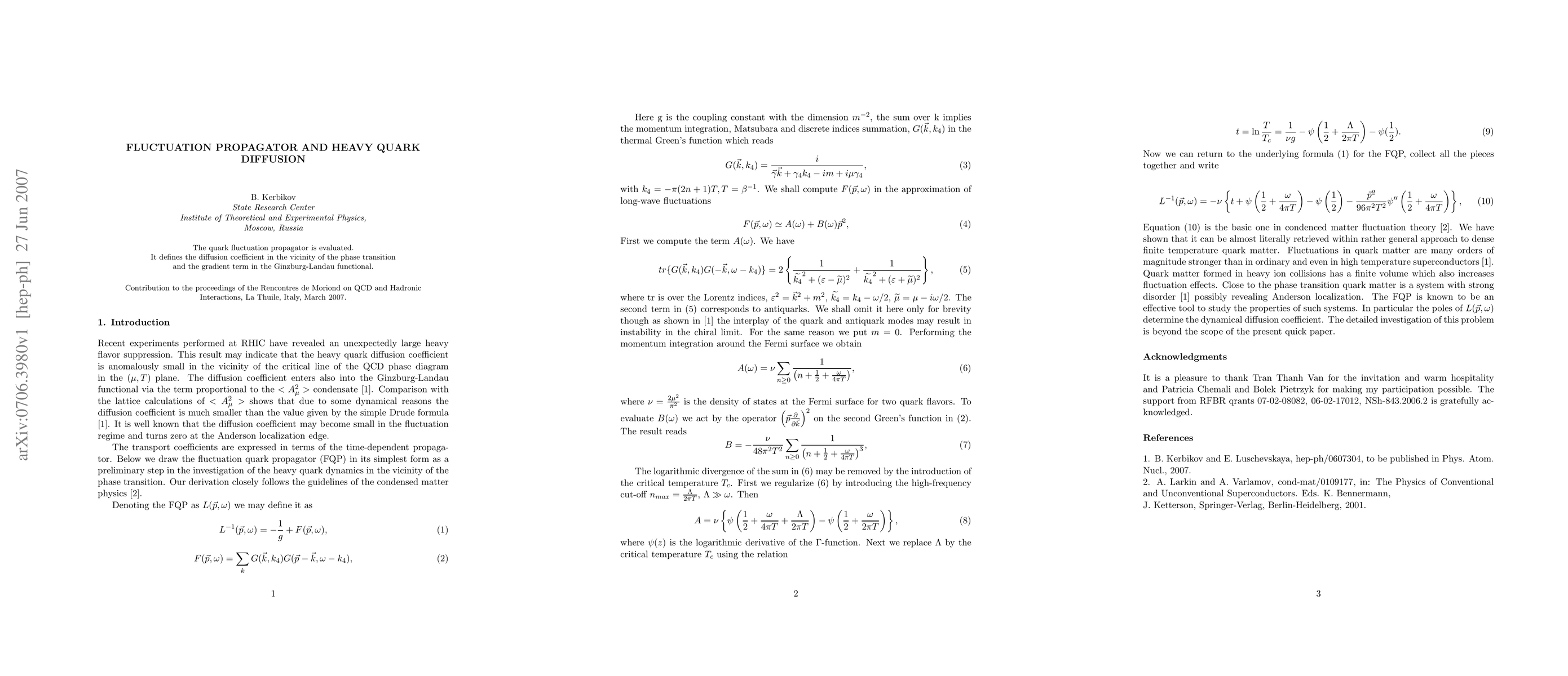 The quark fluctuation propagator is evaluated. It defines the diffusion coefficient in the vicinity of the phase transition and the gradient term in the Ginzburg-Landau functional.