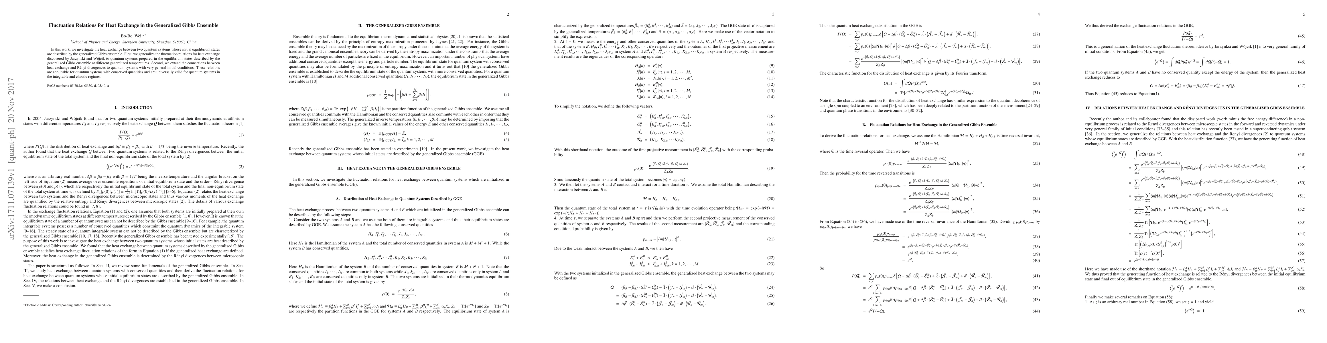 This paper generalizes fluctuation relations for heat exchange to quantum systems described by the generalized Gibbs ensemble at different generalized temperatures, extending these relations to encompass quantum systems with conserved quantities across integrable and chaotic regimes.