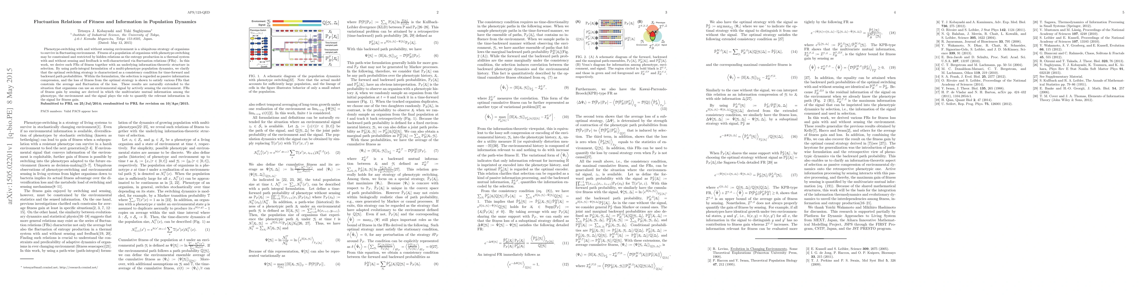 This paper derives fluctuation relations (FRs) for fitness in populations with phenotype-switching, showing how fitness loss is constrained by information-theoretic principles. It extends these FRs to scenarios where organisms can sense and respond to environmental signals, using multivariate mutual information to quantify the fitness gain from such sensing.