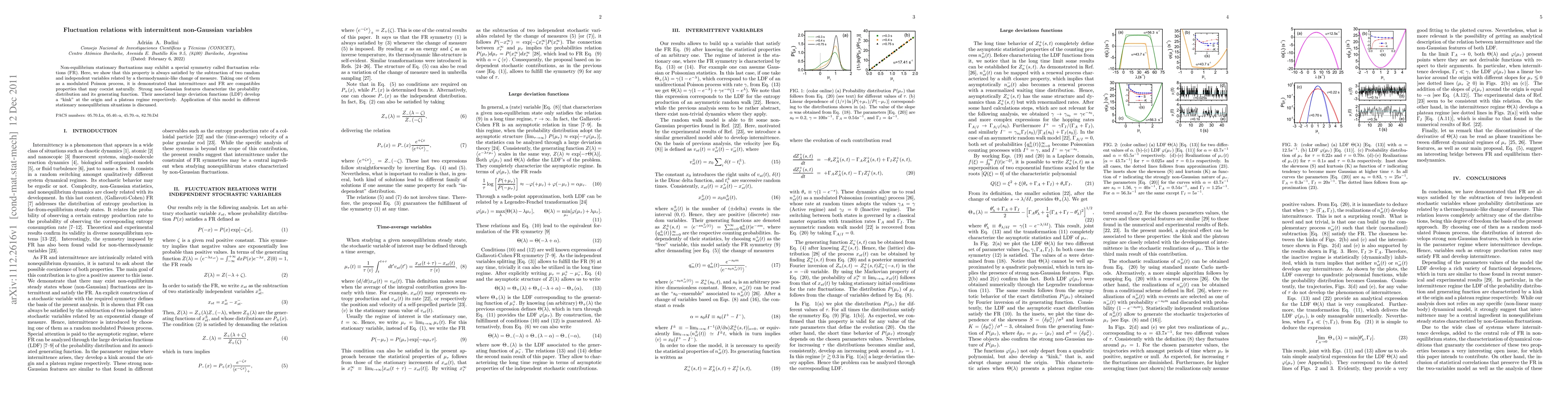 This paper demonstrates that fluctuation relations (FR) are satisfied by subtracting two independent random variables, even when one follows a modulated Poisson process, showing intermittence and FR can coexist. The non-Gaussian nature of the probability distribution and its generating function is highlighted, with large deviation functions exhibiting a kink at the origin and a plateau regime.