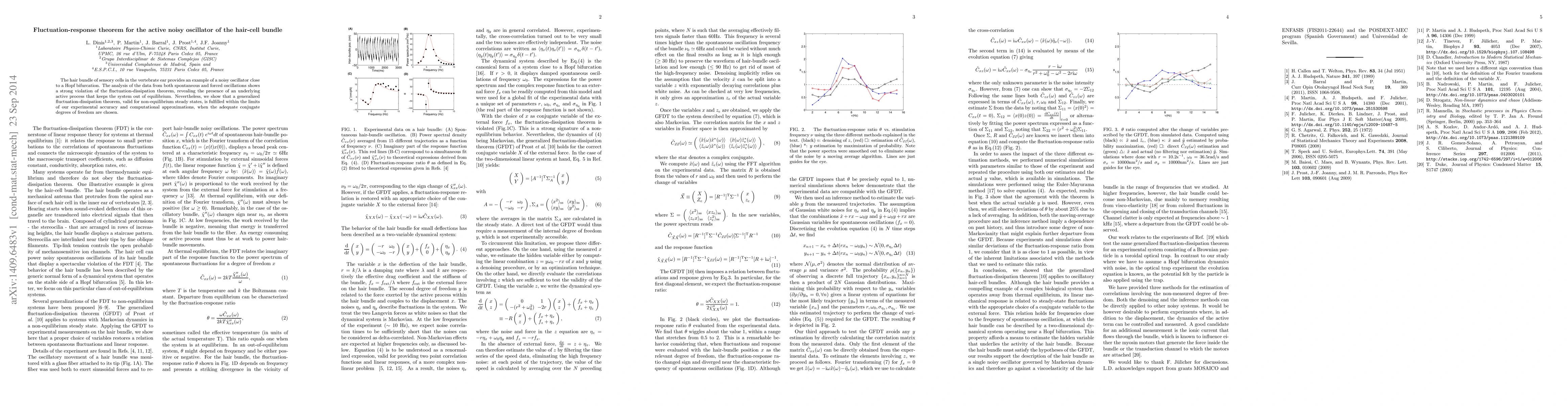 The hair bundle in the vertebrate ear exhibits active oscillations near a Hopf bifurcation, violating the traditional fluctuation-dissipation theorem due to its active, non-equilibrium nature. A generalized fluctuation-response theorem is shown to hold for these active noisy oscillators, provided appropriate conjugate degrees of freedom are considered.