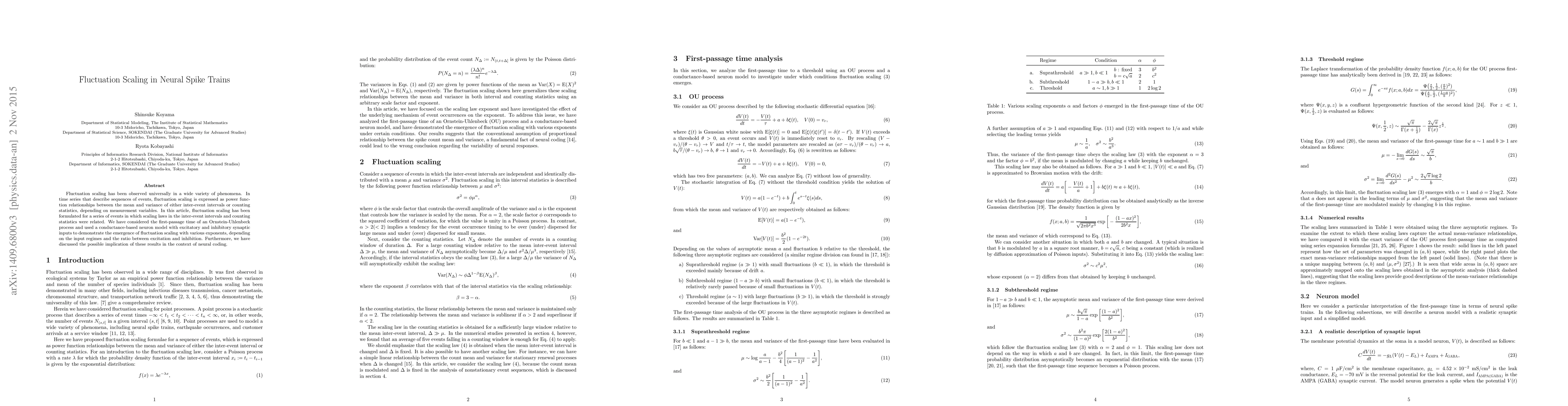 This paper investigates fluctuation scaling in neural spike trains, demonstrating its emergence through a conductance-based neuron model under varying excitatory and inhibitory inputs. The findings suggest that fluctuation scaling depends on the input regime and the ratio between excitation and inhibition, with implications for neural coding.
