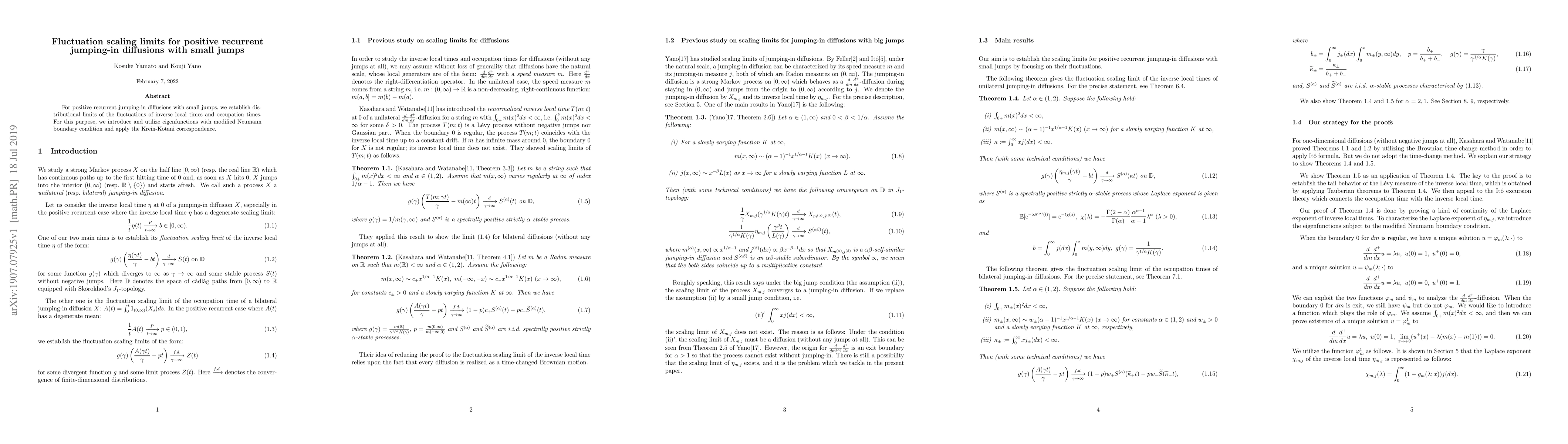 Summary: This paper establishes distributional limits for fluctuations in positive recurrent jumping-in diffusions with small jumps, utilizing eigenfunctions with modified Neumann boundary conditions and applying the Krein-Kotani correspondence. The focus is on inverse local times and occupation times.