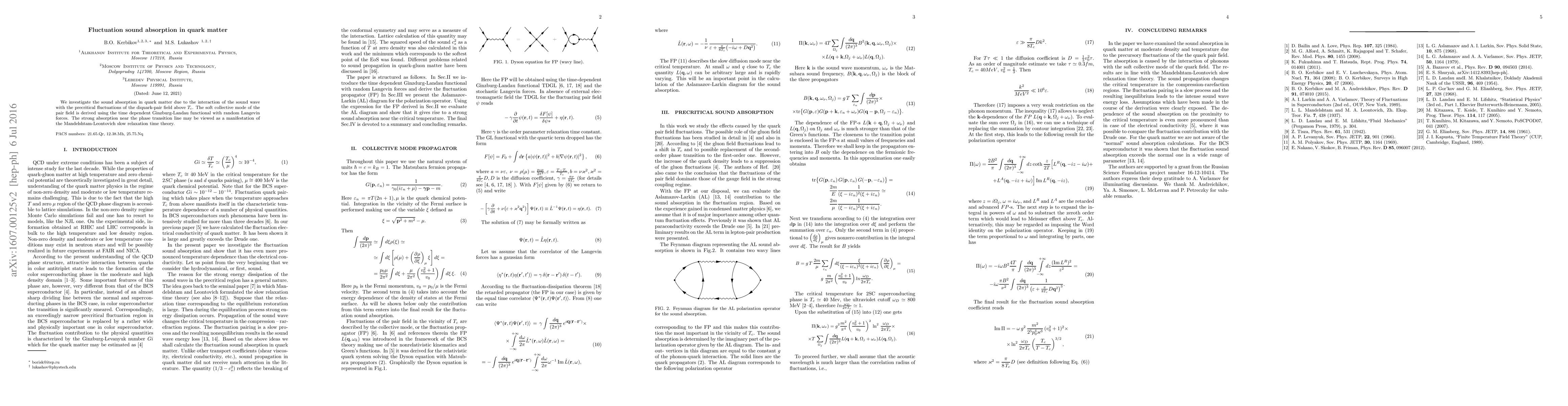 We investigate the sound absorption in quark matter due to the interaction of the sound wave with the precritical fluctuations of the diquark-pair field above $T_c$. The soft collective mode of the pair field is derived using the time dependent Ginzburg-Landau functional with random Langevin forces. The strong absorption near the phase transition line may be viewed as a manifestation of the Mandelshtam-Leontovich slow relaxation time theory.