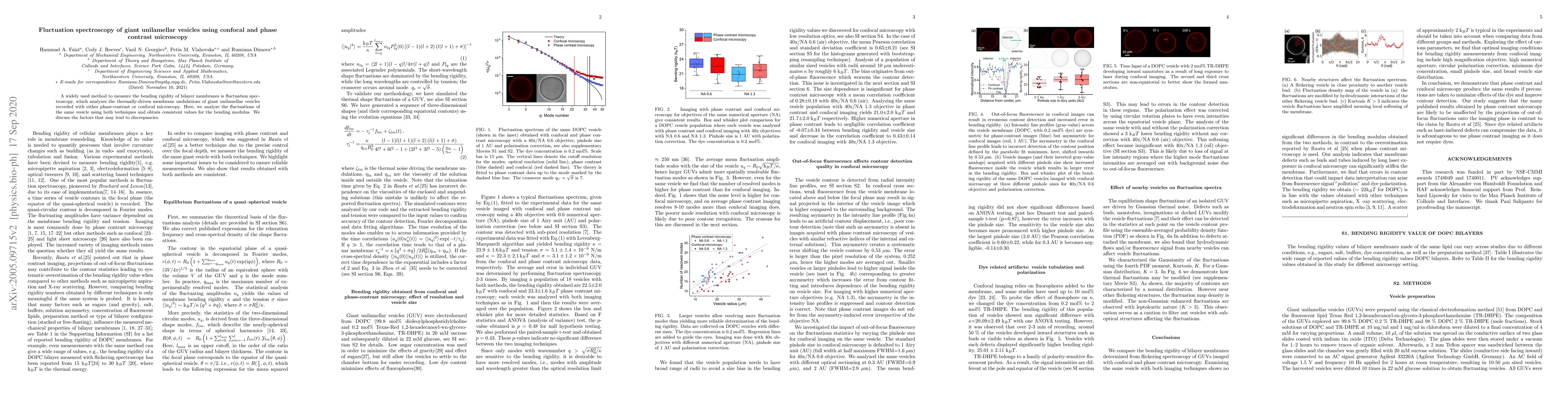 This study compares fluctuation spectroscopy using confocal and phase contrast microscopy to measure the bending rigidity of giant unilamellar vesicles, finding consistent bending modulus values but noting potential factors causing discrepancies.