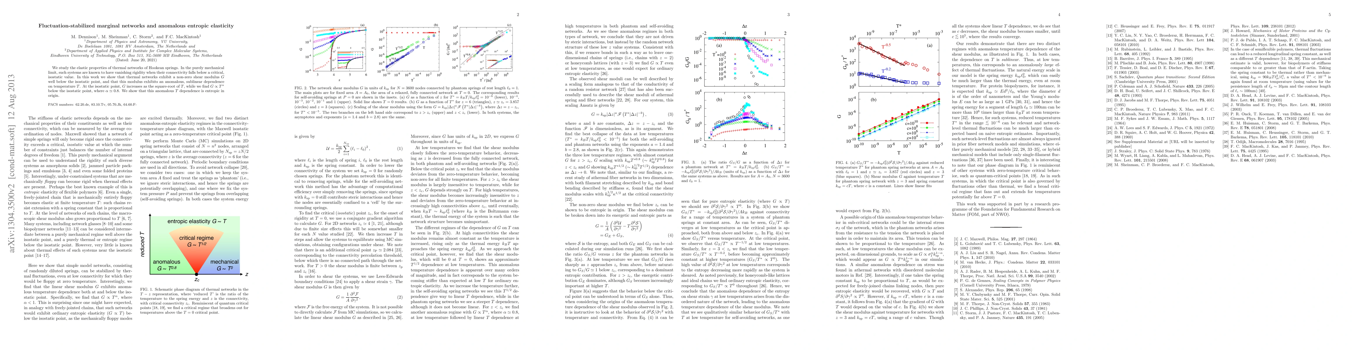 This paper investigates the elastic properties of thermal networks of Hookean springs, revealing that they maintain a non-zero shear modulus below the isostatic point, with an anomalous sublinear temperature dependence. The shear modulus increases as the square-root of temperature at the isostatic point and follows a $T^{\alpha}$ relationship below it, where $\alpha \simeq 0.8$, indicating an entropic origin for this behavior.