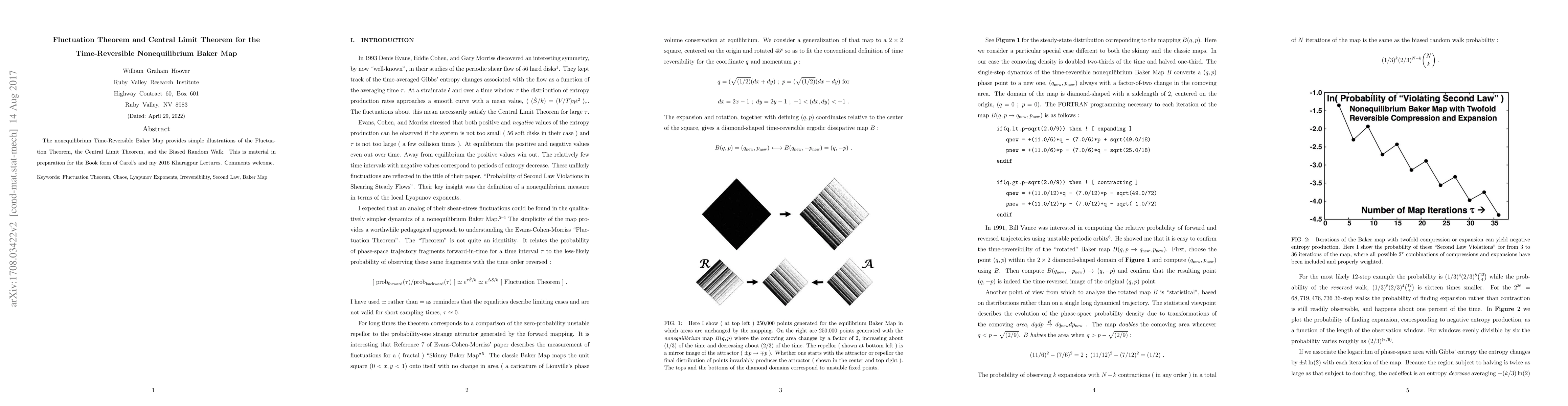 The nonequilibrium Time-Reversible Baker Map provides simple illustrations of the Fluctuation Theorem, the Central Limit Theorem, and the Biased Random Walk. This is material in preparation for the Book form of Carol's and my 2016 Kharagpur Lectures.