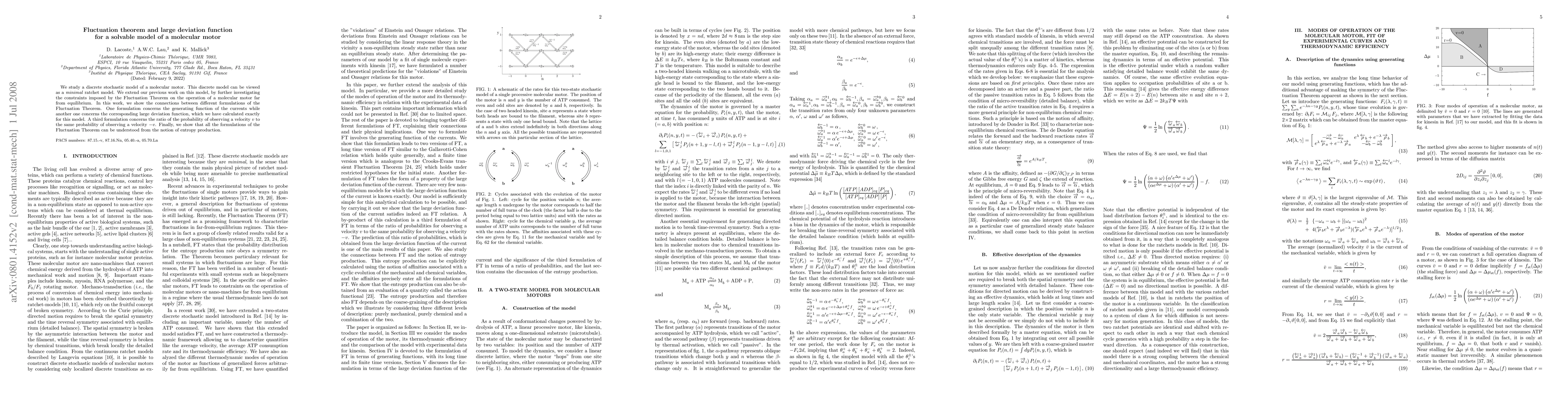 We study a discrete stochastic model of a molecular motor. This discrete model can be viewed as a \emph{minimal} ratchet model. We extend our previous work on this model, by further investigating the constraints imposed by the Fluctuation Theorem on the operation of a molecular motor far from equilibrium. In this work, we show the connections between different formulations of the Fluctuation Theorem. One formulation concerns the generating function of the currents while another one concerns the corresponding large deviation function, which we have calculated exactly for this model. A third formulation of FT concerns the ratio of the probability of making one forward step to the probability of making one backward step. The predictions of this last formulation of the Fluctuation Theorem adapted to our model are in very good agreement with the data of Carter and Cross [Nature, {\bf 435}, 308 (2005)] on single molecule measurements with kinesin. Finally, we show that all the formulations of FT can be understood from the notion of entropy production.
