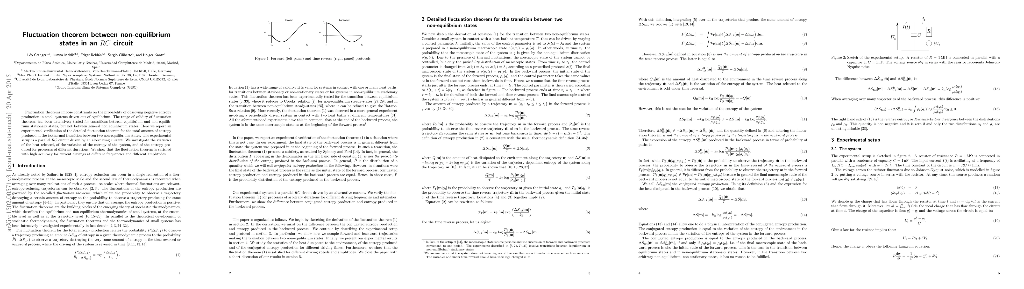 This paper experimentally verifies the detailed fluctuation theorem for an RC circuit transitioning isothermally between two non-equilibrium states, demonstrating high accuracy in the statistics of heat release and entropy production across various driving frequencies and amplitudes.