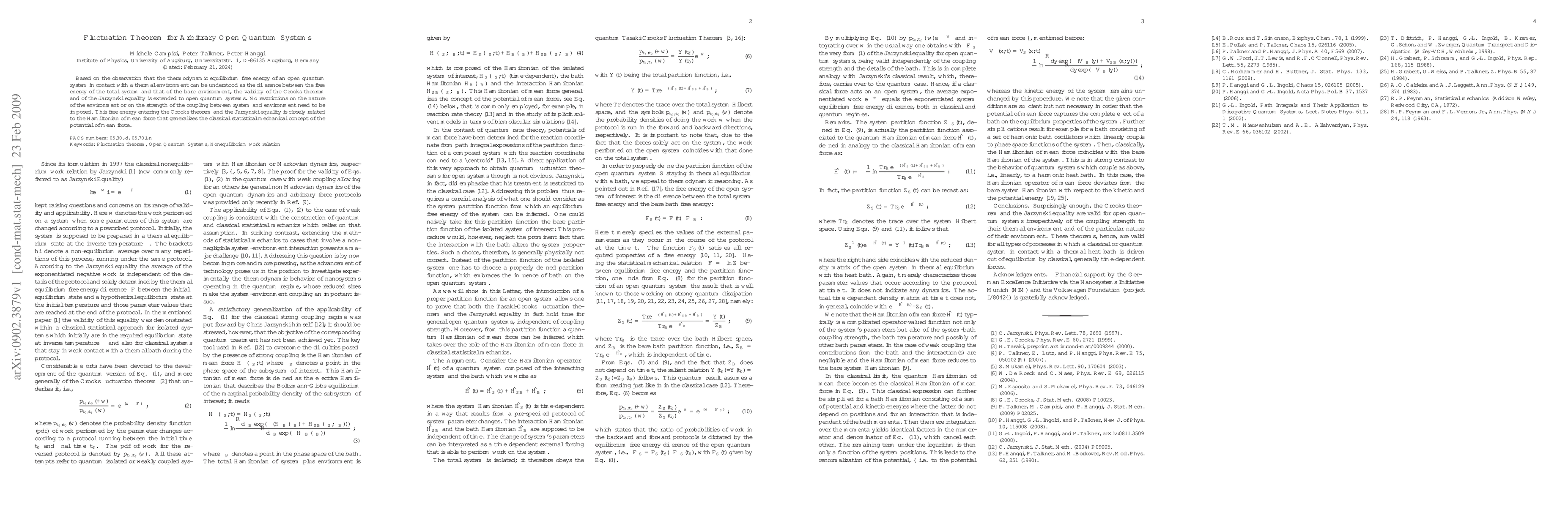 This paper extends the Crooks theorem and Jarzynski equality to open quantum systems, demonstrating their validity without restrictions on the environment or coupling strength, and relates the free energy involved to the Hamiltonian of mean force.