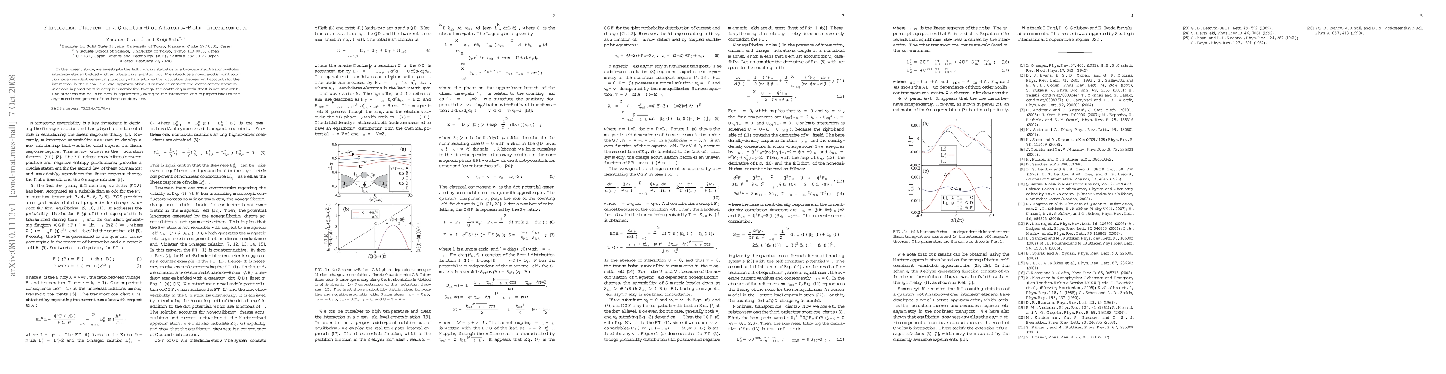 This study explores the full counting statistics in a quantum-dot-based Aharonov-Bohm interferometer, introducing a novel saddle-point solution for the cumulant-generating function that satisfies the fluctuation theorem and accounts for mean-field interactions. The skewness remains finite in equilibrium due to interactions, proportional to the asymmetric component of nonlinear conductance.
