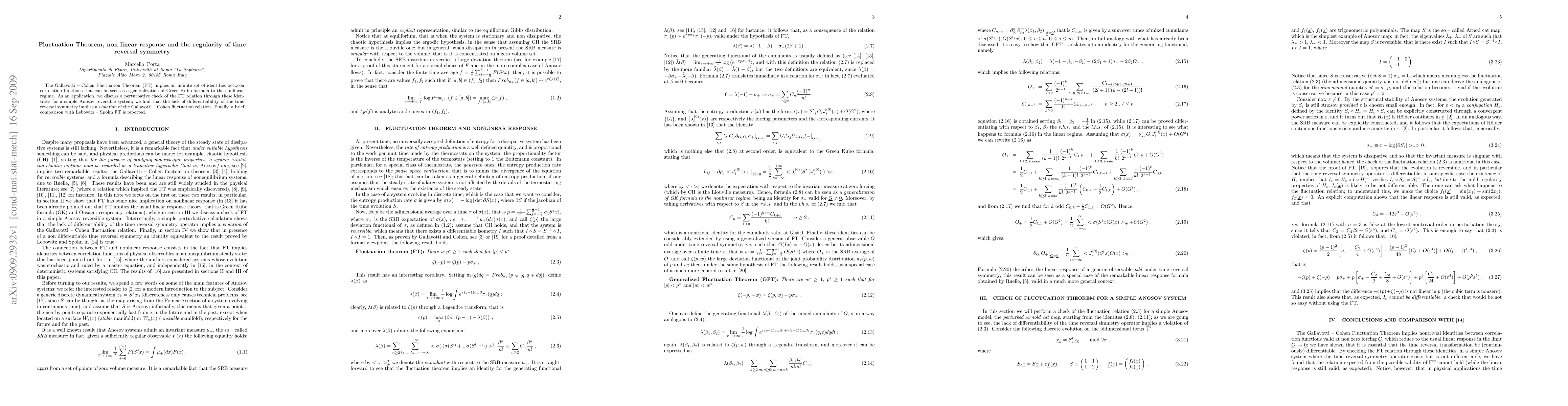 The Gallavotti-Cohen Fluctuation Theorem generalizes the Green-Kubo formula to nonlinear regimes, revealing identities between correlation functions. In an Anosov reversible system, the lack of differentiability in time reversal symmetry leads to a violation of the fluctuation relation, contrasting with the Lebowitz-Spohn Fluctuation Theorem.