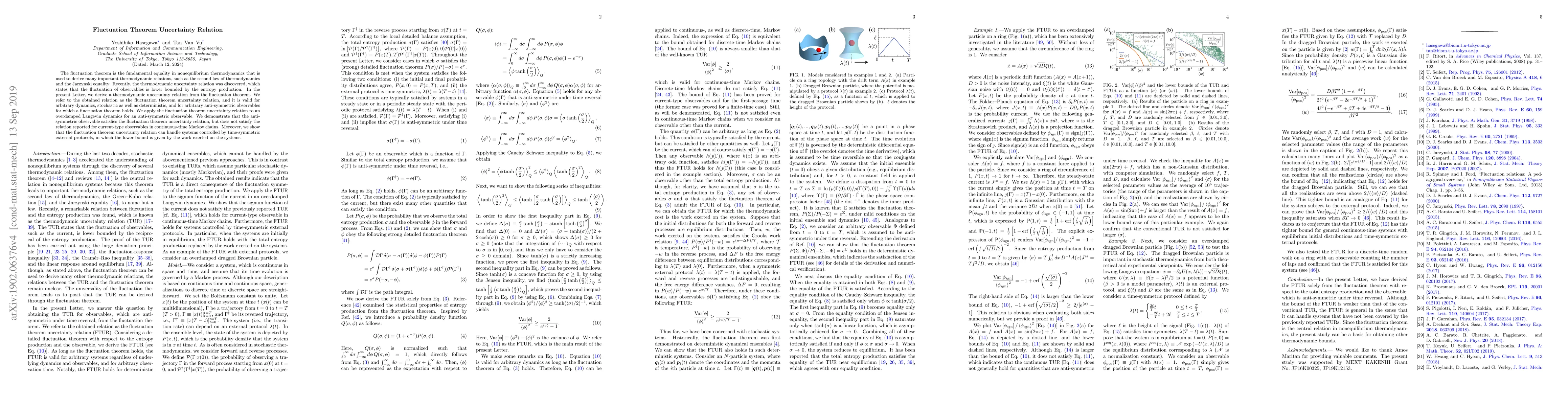 This paper derives a thermodynamic uncertainty relation from the fluctuation theorem, applicable to both stochastic and deterministic dynamics, and demonstrates its validity for anti-symmetric observables. It shows that these observables satisfy the new relation but differ from those in continuous-time Markov chains, and extends the relation to systems under time-symmetric protocols.