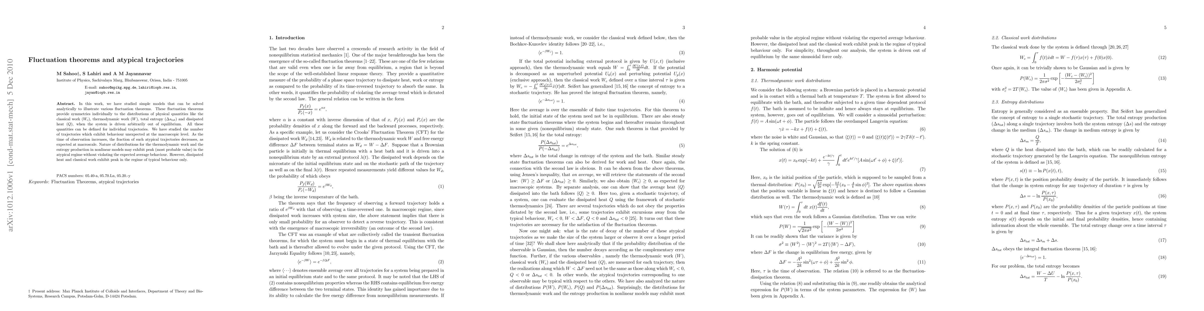 In this work, we have studied simple models that can be solved analytically to illustrate various fluctuation theorems. These fluctuation theorems provide symmetries individually to the distributions of physical quantities like the classical work ($W_c$), thermodynamic work ($W$), total entropy ($\Delta s_{tot}$) and dissipated heat ($Q$), when the system is driven arbitrarily out of equilibrium. All these quantities can be defined for individual trajectories. We have studied the number of trajectories which exhibit behaviour unexpected at the macroscopic level. As the time of observation increases, the fraction of such atypical trajectories decreases, as expected at macroscale. Nature of distributions for the thermodynamic work and the entropy production in nonlinear models may exhibit peak (most probable value) in the atypical regime without violating the expected average behaviour. However, dissipated heat and classical work exhibit peak in the regime of typical behaviour only.