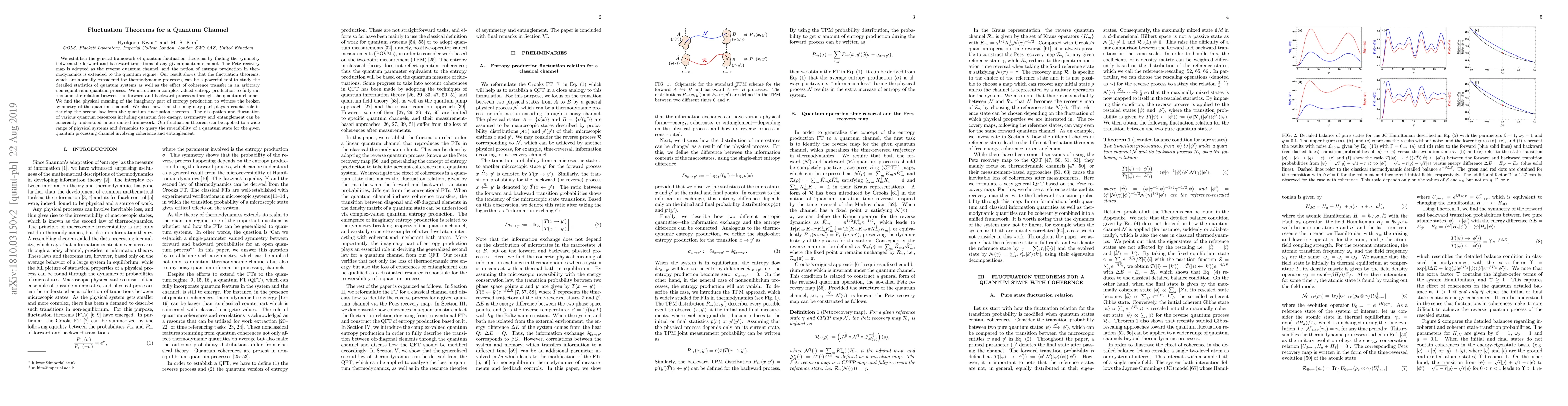 The paper introduces a complex-valued entropy production and a generalized quantum fluctuation theorem applicable to quantum channels, providing a unified framework for understanding resource dissipation in quantum systems.