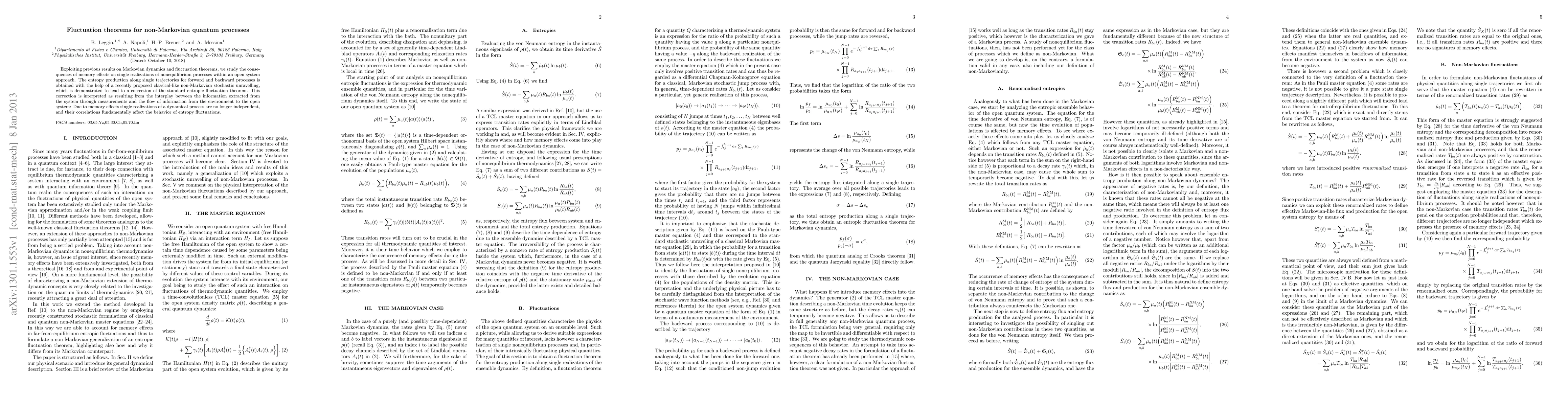 This paper explores the impact of memory effects on entropy production in non-Markovian quantum processes, demonstrating that classical-like non-Markovian stochastic unraveling leads to a correction in the standard entropic fluctuation theorem due to the interplay between system measurements and environmental information flow. Memory effects cause correlations in single realizations, fundamentally altering entropy fluctuations.