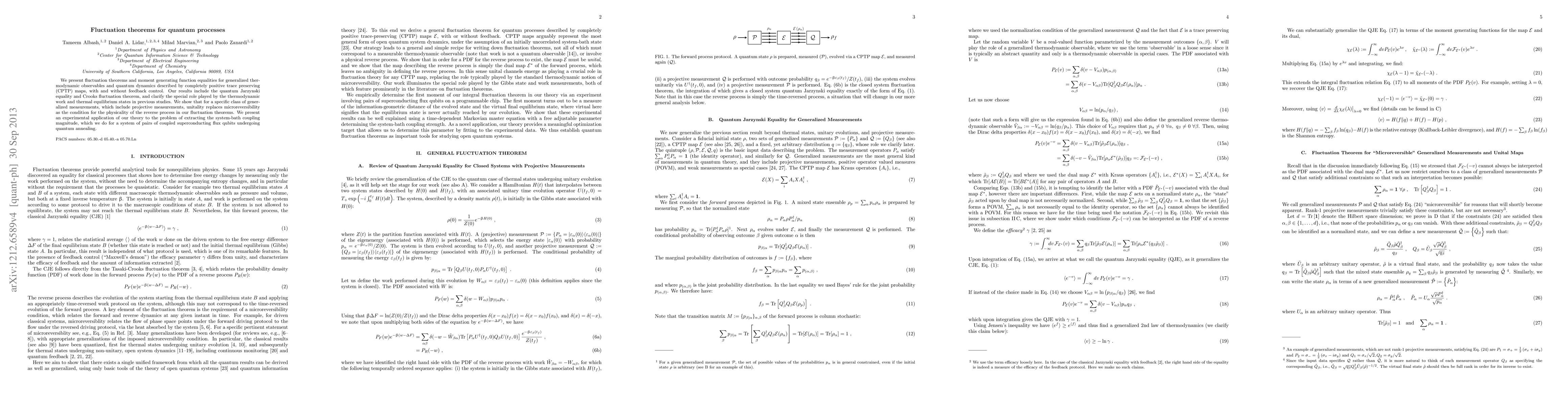 This paper develops fluctuation theorems for quantum processes, including the quantum Jarzynski equality and Crooks fluctuation theorem, and explores the role of thermodynamic work and thermal equilibrium. It highlights how unitality, rather than microreversibility, governs the physicality of reverse processes under certain measurements, and applies the theory to determine system-bath coupling in superconducting flux qubits undergoing quantum annealing.