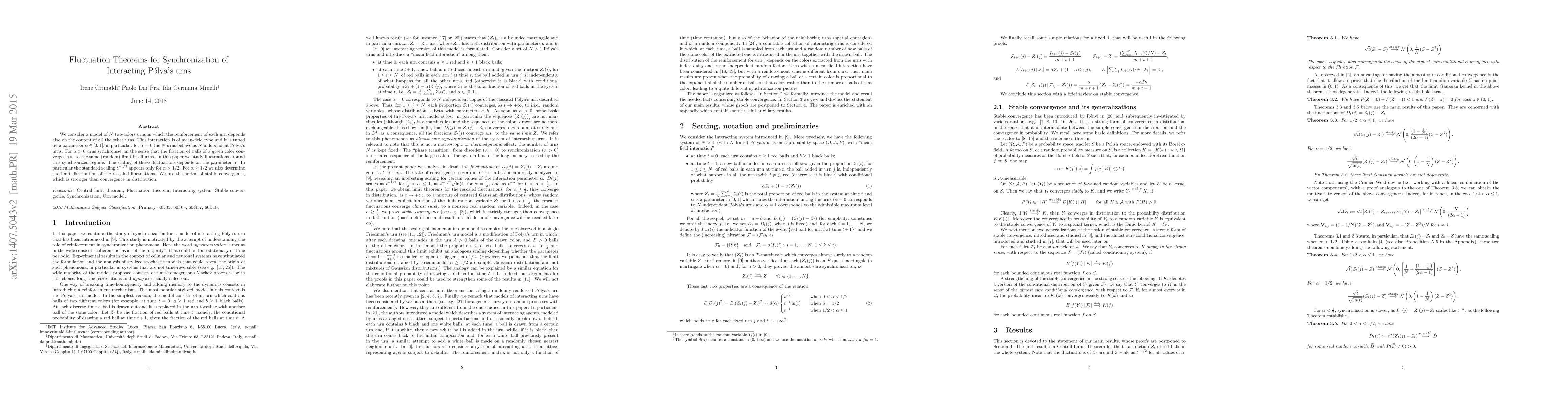 We consider a model of N two-colors urns in which the reinforcement of each urn depends also on the content of all the other urns. This interaction is of mean-field type and it is tuned by a parameter $\alpha$ in [0,1]; in particular, for $\alpha=0$ the N urns behave as N independent Polya's urns. As shown in [9], for $\alpha>0$ urns synchronize, in the sense that the fraction of balls of a given color converges a.s. to the same (random) limit in all urns. In this paper we study fluctuations around this synchronized regime. The scaling of these fluctuations depends on the parameter $\alpha$. In particular the standard scaling $t^{-1/2}$ appears only for $\alpha>1/2$. For $\alpha\geq 1/2$ we also determine the limit distribution of the rescaled fluctuations. We use the notion of stable convergence, which is stronger than convergence in distribution.