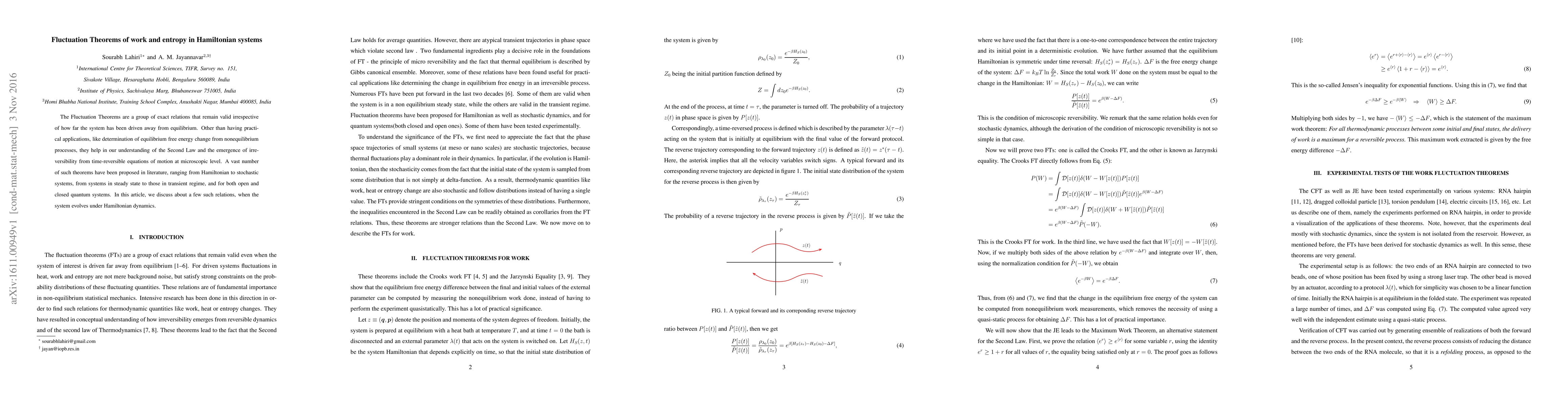 This paper explores Fluctuation Theorems in Hamiltonian systems, providing exact relations valid far from equilibrium that elucidate the Second Law and irreversibility. It discusses several theorems applicable to both steady and transient states, and their implications for understanding nonequilibrium processes and equilibrium free energy changes.