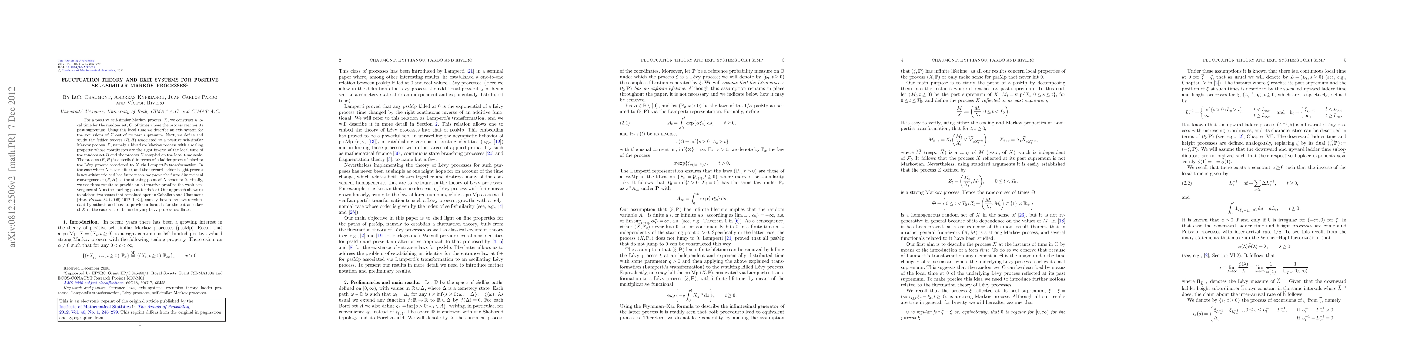 This research paper develops a new approach to studying positive self-similar Markov processes, introducing an exit system and ladder process that converge under certain conditions, offering a new proof for the weak convergence of these processes.