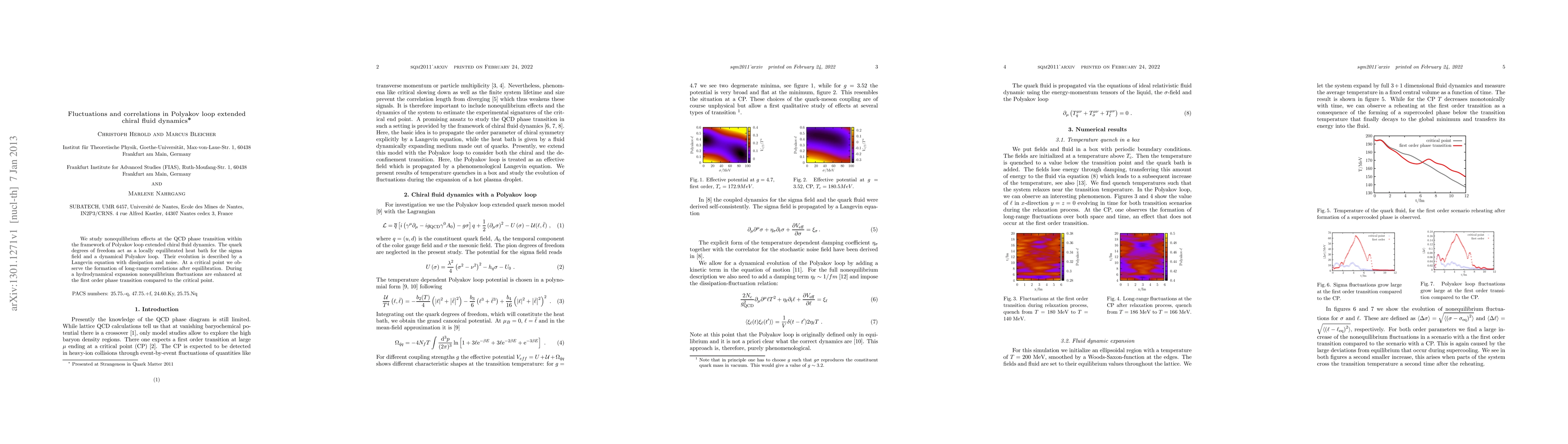 This paper investigates nonequilibrium dynamics at the QCD phase transition using Polyakov loop extended chiral fluid dynamics, revealing enhanced fluctuations and long-range correlations at the critical point and during hydrodynamical expansion at first-order phase transitions.