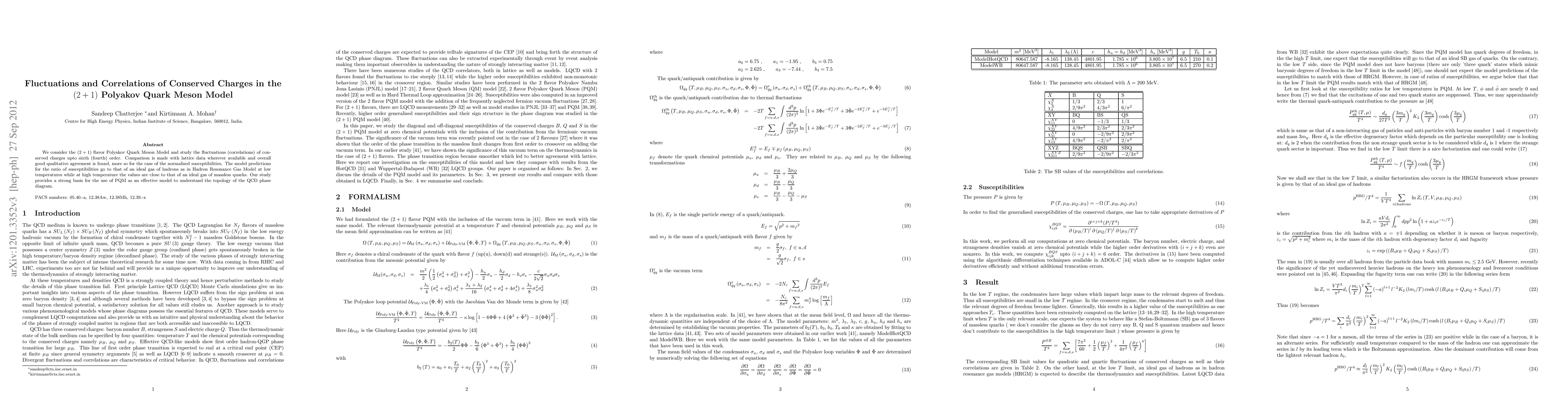 We consider the $(2+1)$ flavor Polyakov Quark Meson Model and study the fluctuations (correlations) of conserved charges upto sixth (fourth) order. Comparison is made with lattice data wherever available and overall good qualitative agreement is found, more so for the case of the normalised susceptibilities. The model predictions for the ratio of susceptibilities go to that of an ideal gas of hadrons as in Hadron Resonance Gas Model at low temperatures while at high temperature the values are close to that of an ideal gas of massless quarks. Our study provides a strong basis for the use of PQM as an effective model to understand the topology of the QCD phase diagram.