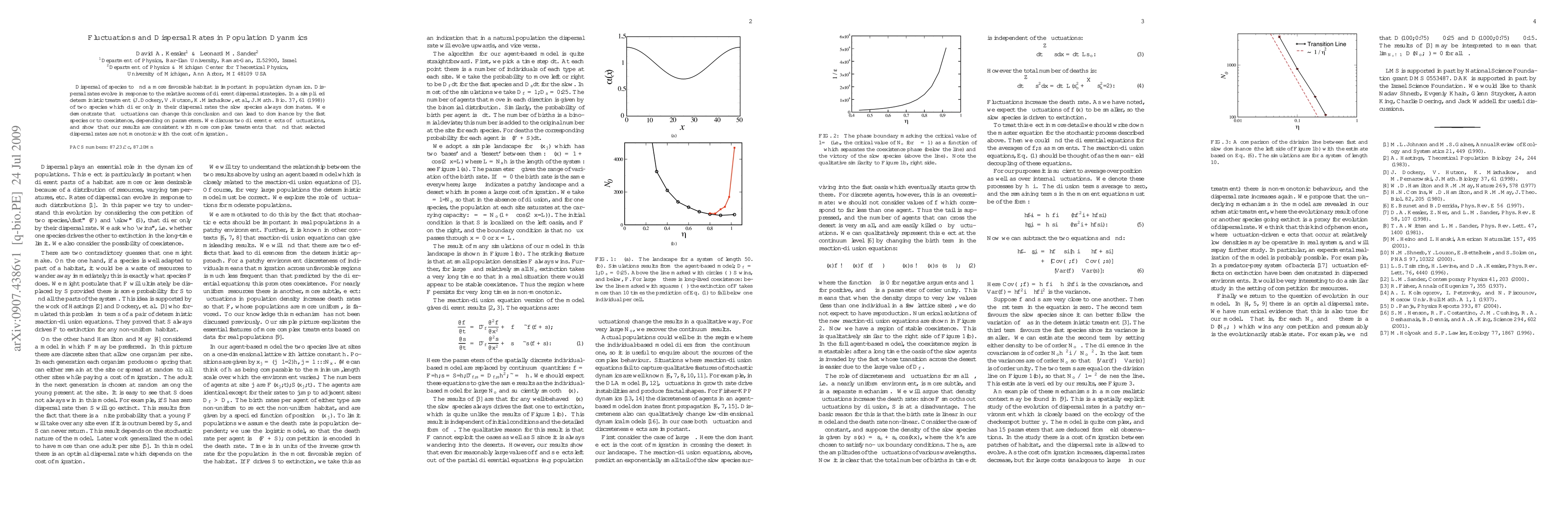 Dispersal of species to find a more favorable habitat is important in population dynamics. Dispersal rates evolve in response to the relative success of different dispersal strategies. In a simplified deterministic treatment (J. Dockery, V. Hutson, K. Mischaikow, et al., J. Math. Bio. 37, 61 (1998)) of two species which differ only in their dispersal rates the slow species always dominates. We demonstrate that fluctuations can change this conclusion and can lead to dominance by the fast species or to coexistence, depending on parameters. We discuss two different effects of fluctuations, and show that our results are consistent with more complex treatments that find that selected dispersal rates are not monotonic with the cost of migration.