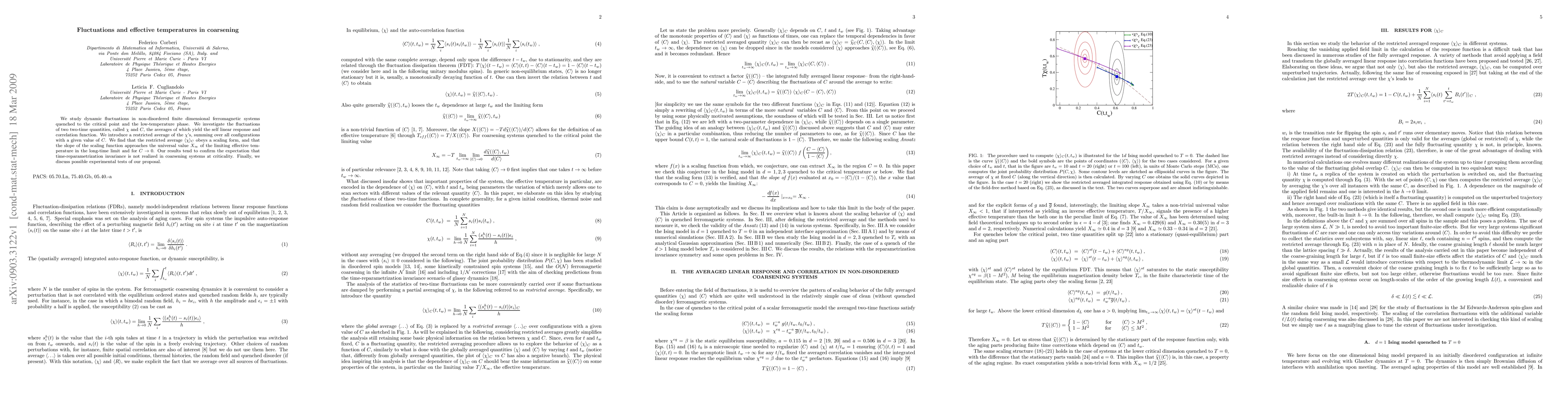 This paper investigates dynamic fluctuations in ferromagnetic systems near criticality, focusing on two-time quantities $\chi$ and $C$ that relate to self-linear response and correlation functions. The study reveals that the restricted average of $\chi$ follows a scaling form, indicating a universal limiting effective temperature as time progresses, thus challenging the realization of time-reparametrization invariance in coarsening systems.