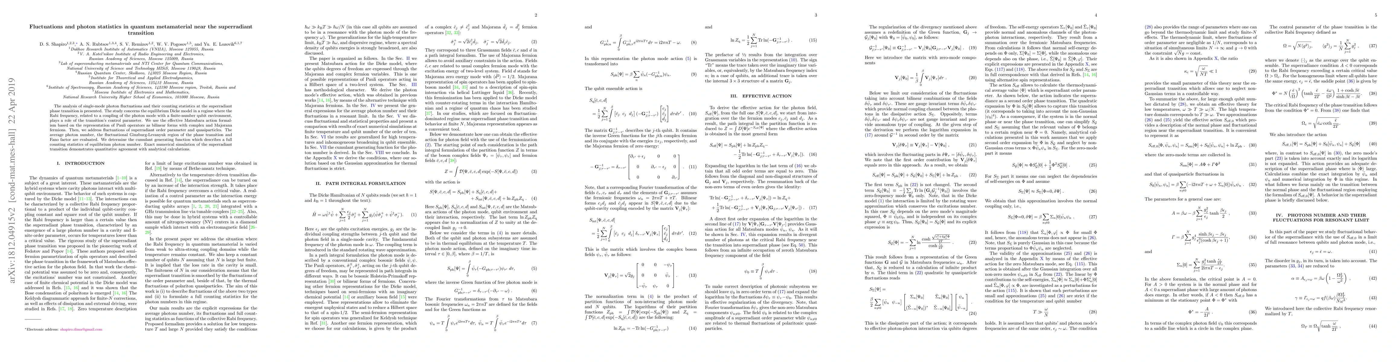 This paper investigates photon fluctuations and statistics in a quantum metamaterial near the superradiant phase transition using the Dicke model. Analytical and numerical methods reveal the fluctuational Ginzburg-Levanyuk region and the full counting statistics of photon number, showing agreement between theory and simulation.
