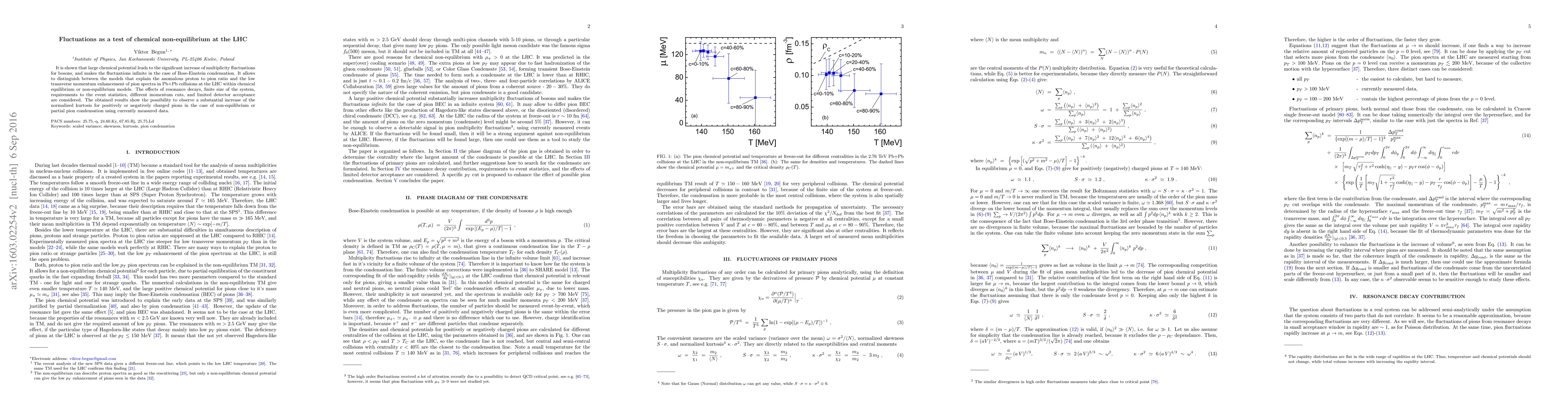 Researchers found that large chemical potential can cause significant fluctuations in particle multiplicity at the LHC, allowing them to distinguish between different models of proton-pion interactions. The study suggests that these fluctuations could be used to observe a substantial increase in kurtosis for positively or negatively charged pions.