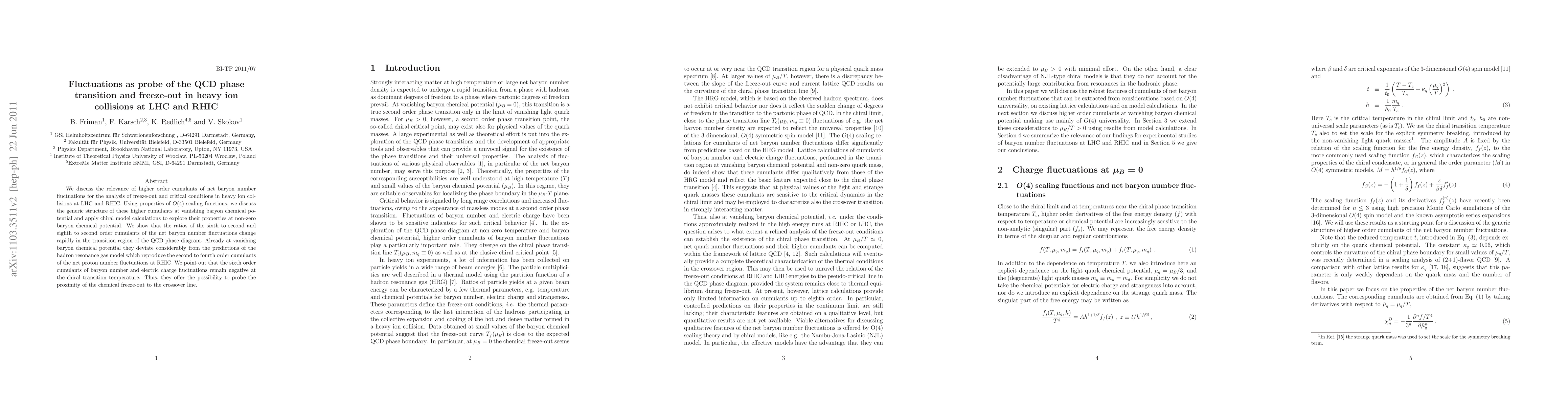 We discuss the relevance of higher order moments of net baryon number fluctuations for the analysis of freeze-out and critical conditions in heavy ion collisions at LHC and RHIC. Using properties of O(4) scaling functions, we discuss the generic structure of these higher moments at vanishing baryon chemical potential and apply chiral model calculations to explore their properties at non-zero baryon chemical potential. We show that the ratios of the sixth to second and eighth to second order moments of the net baryon number fluctuations change rapidly in the transition region of the QCD phase diagram. Already at vanishing baryon chemical potential they deviate considerably from the predictions of the hadron resonance gas model which reproduce the second to fourth order moments of the net proton number fluctuations at RHIC. We point out that the sixth order moments of baryon number and electric charge fluctuations remain negative at the chiral transition temperature. Thus, they offer the possibility to probe the proximity of the thermal freeze-out to the crossover line.