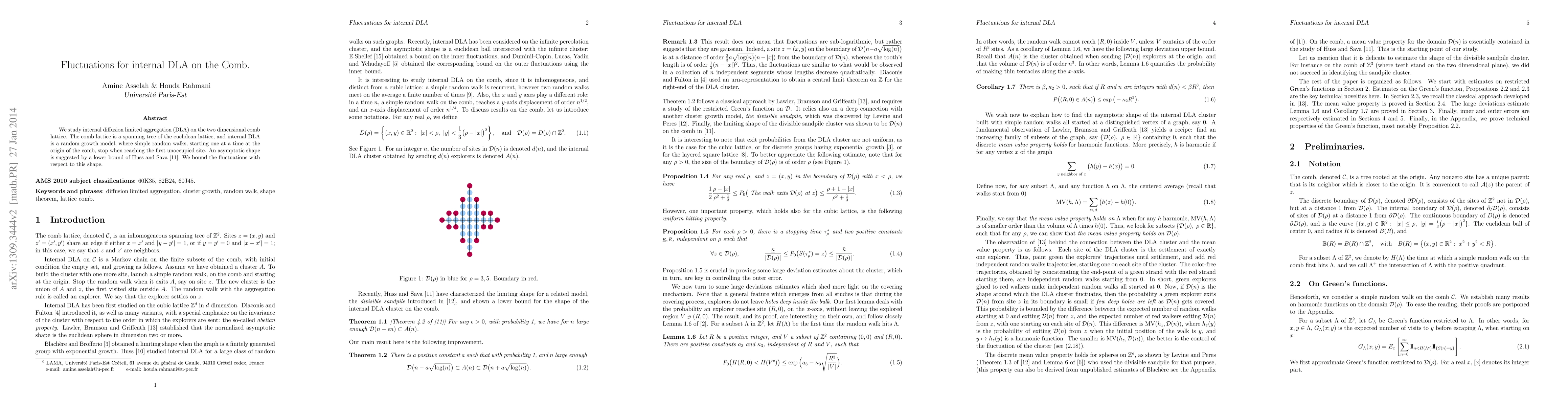 This paper investigates the fluctuations in internal diffusion limited aggregation (DLA) on the two-dimensional comb lattice, showing that these fluctuations are Gaussian, similar to the one-dimensional lattice, and suggesting an asymptotic shape based on prior work by Huss and Sava.