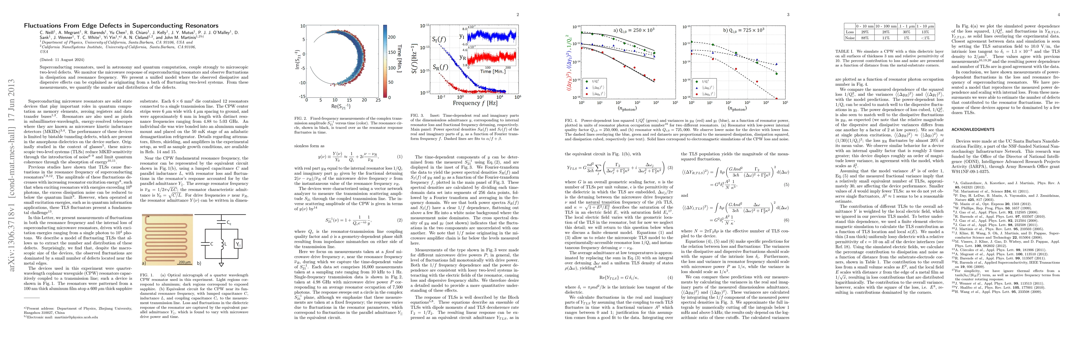 Superconducting resonators, used in astronomy and quantum computation, couple strongly to microscopic two-level defects. We monitor the microwave response of superconducting resonators and observe fluctuations in dissipation and resonance frequency. We present a unified model where the observed dissipative and dispersive effects can be explained as originating from a bath of fluctuating two-level systems. From these measurements, we quantify the number and distribution of the defects.
