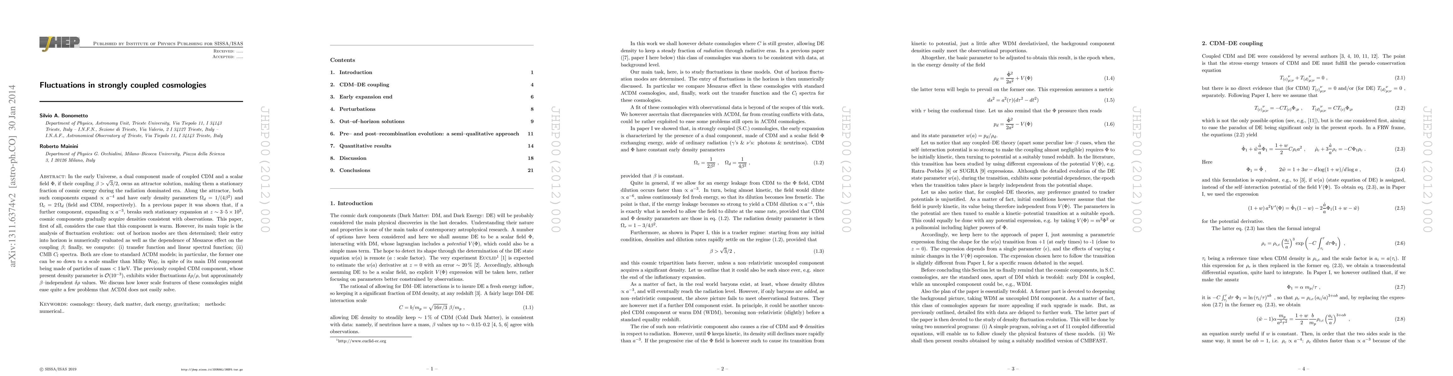In the early Universe, a dual component made of coupled CDM and a scalar field $\Phi$, if their coupling $\beta > \sqrt{3}/2$, owns an attractor solution, making them a stationary fraction of cosmic energy during the radiation dominated era. Along the attractor, both such components expand $\propto a^{-4}$ and have early density parameters $\Omega_{d} = 1/ (4\beta^2)$ and $\Omega_c= 2, \Omega_d$ (field and CDM, respectively). In a previous paper it was shown that, if a further component, expanding $\propto a^{-3}$, breaks such stationary expansion at $z \sim 3$--$5 \times 10^3$, cosmic components gradually acquire densities consistent with observations. This paper, first of all, considers the case that this component is warm. However, its main topic is the analysis of fluctuation evolution: out of horizon modes are then determined; their entry into horizon is numerically evaluated as well as the dependence of Meszaros effect on the coupling $\beta$; finally, we compute: (i) transfer function and linear spectral function; (ii) CMB $C_l$ spectra. Both are close to standard $\Lambda$CDM models; in particular, the former one can be so down to a scale smaller than Milky Way, in spite of its main DM component being made of particles of mass $<1$ keV. The previously coupled CDM component, whose present density parameter is $\cal O$$(10^{-3})$, exhibits wider fluctuations $\delta \rho/\rho$, but approximately $\beta$-independent $\delta \rho$ values. We discuss how lower scale features of these cosmologies might ease quite a few problems that $\Lambda$CDM does not easily solve.