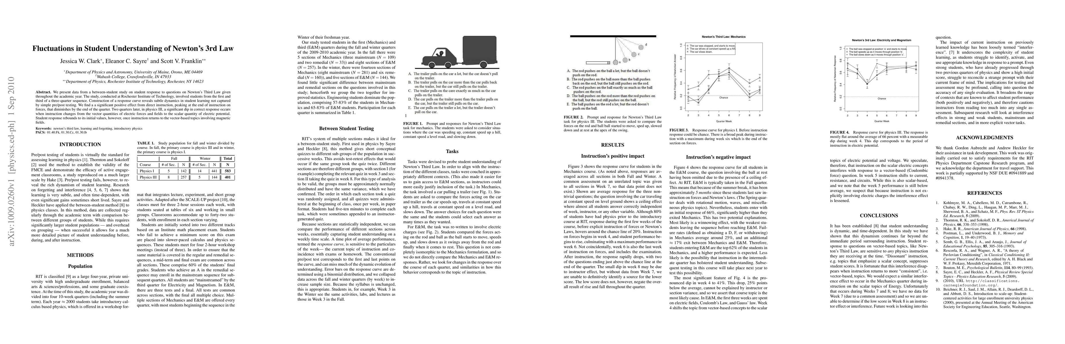 We present data from a between-student study on student response to questions on Newton's Third Law given throughout the academic year. The study, conducted at Rochester Institute of Technology, involved students from the first and third of a three-quarter sequence. Construction of a response curve reveals subtle dynamics in student learning not captured by simple pre/post testing. We find a a significant positive effect from direct instruction, peaking at the end of instruction on forces, that diminishes by the end of the quarter. Two quarters later, in physics III, a significant dip in correct response occurs when instruction changes from the vector quantities of electric forces and fields to the scalar quantity of electric potential. Student response rebounds to its initial values, however, once instruction returns to the vector-based topics involving magnetic fields.