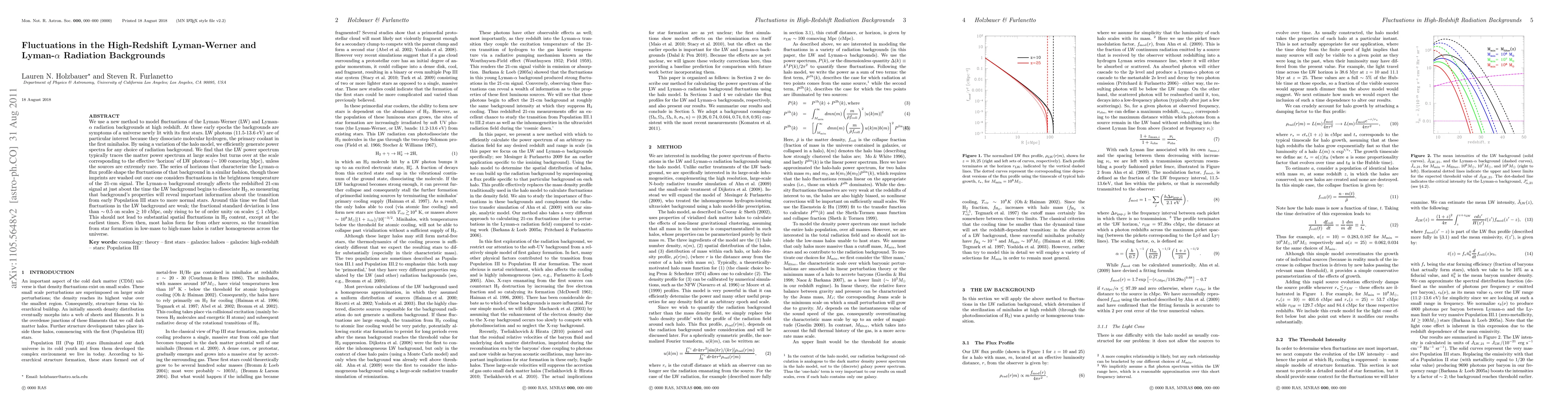 This paper models fluctuations in Lyman-Werner and Lyman-alpha radiation backgrounds at high redshift, revealing that the Lyman-Werner power spectrum traces the matter power spectrum but turns over at a scale corresponding to the effective horizon of LW photons. The Lyman-alpha background significantly affects the redshifted 21-cm signal, providing insights into the transition from early stars to normal stars.