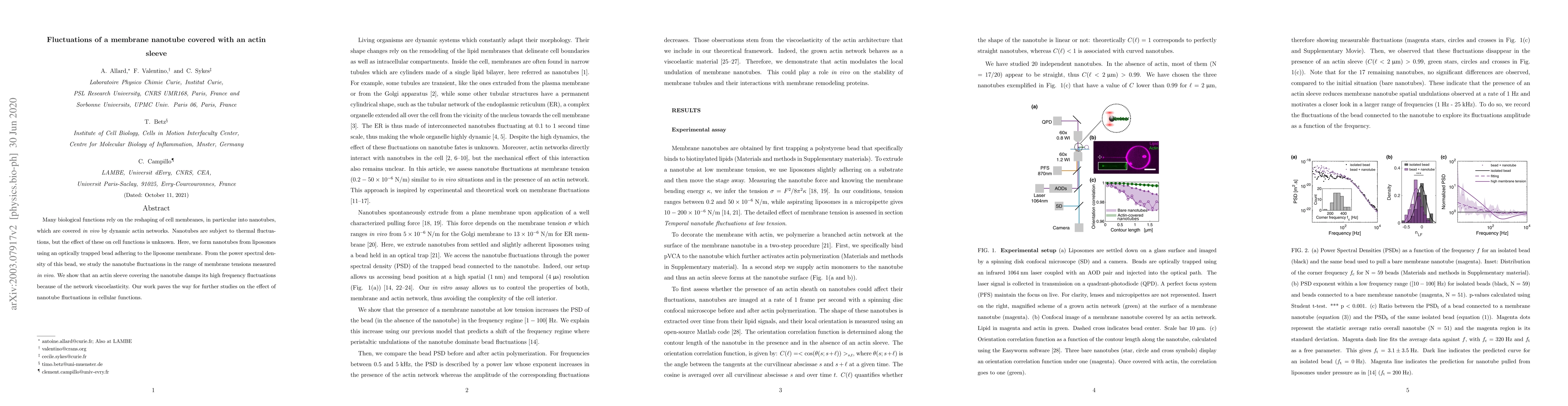 This paper investigates the thermal fluctuations of membrane nanotubes covered by an actin sleeve, using liposomes and optical trapping. It demonstrates that the actin sleeve reduces high-frequency fluctuations due to its viscoelastic properties, which may influence the role of nanotubes in cellular functions.